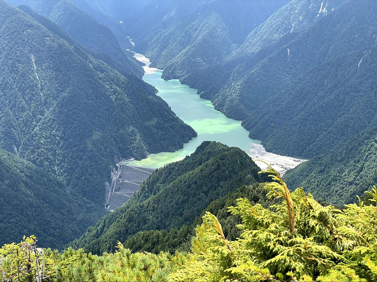 船窪谷からの登山道はなかなかの急登だったが、針ノ木谷を超えた安心感の方が大きく、稜線に出てからは絶景を眺めながらの快適な登山となった。船窪小屋でカップヌードルをいただき、今回の北アルプスパート最後の難所である七倉尾根を下りる。高度が下がるに従ってハシゴの連続するハードな急斜面となり、登りであれば相当消耗するだろうなと感じた。