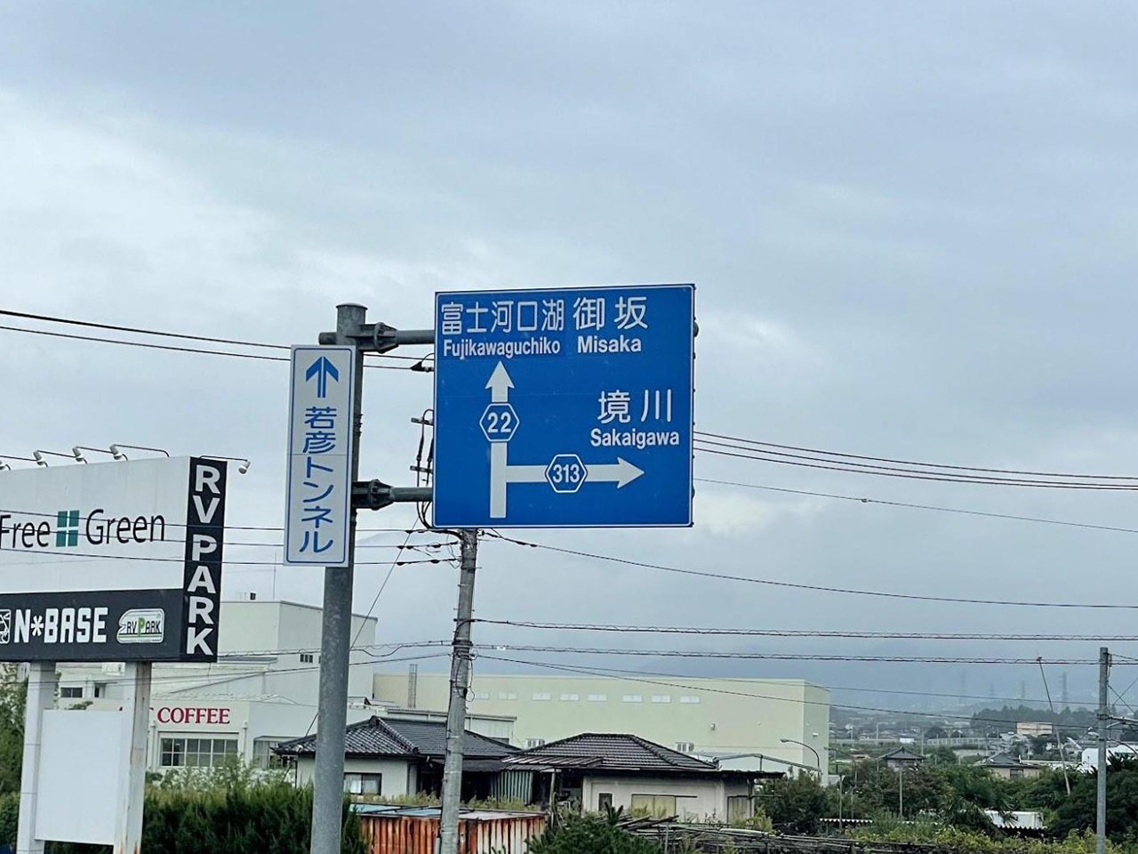 標識に河口湖が現れる