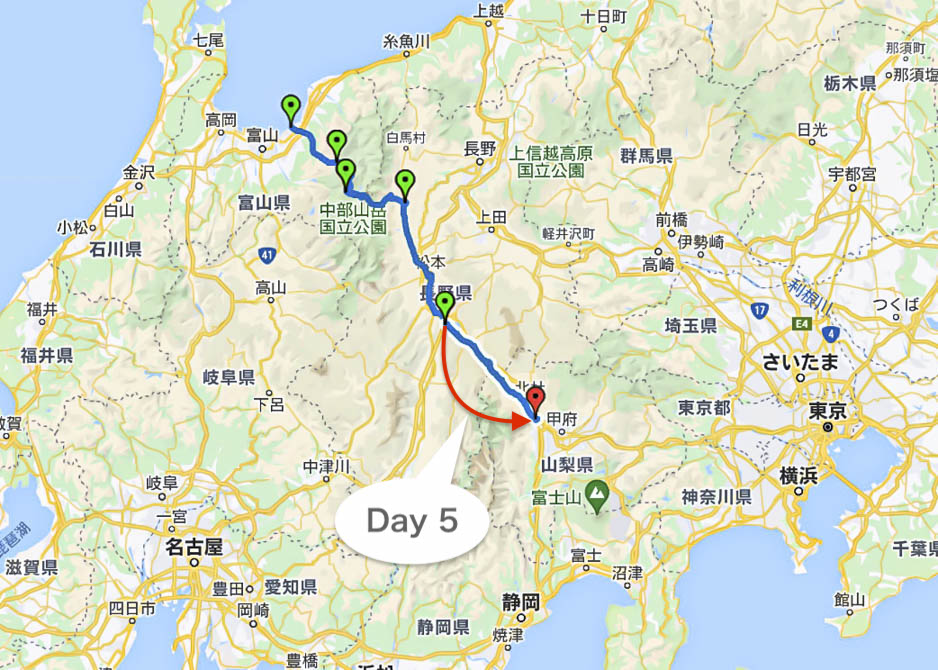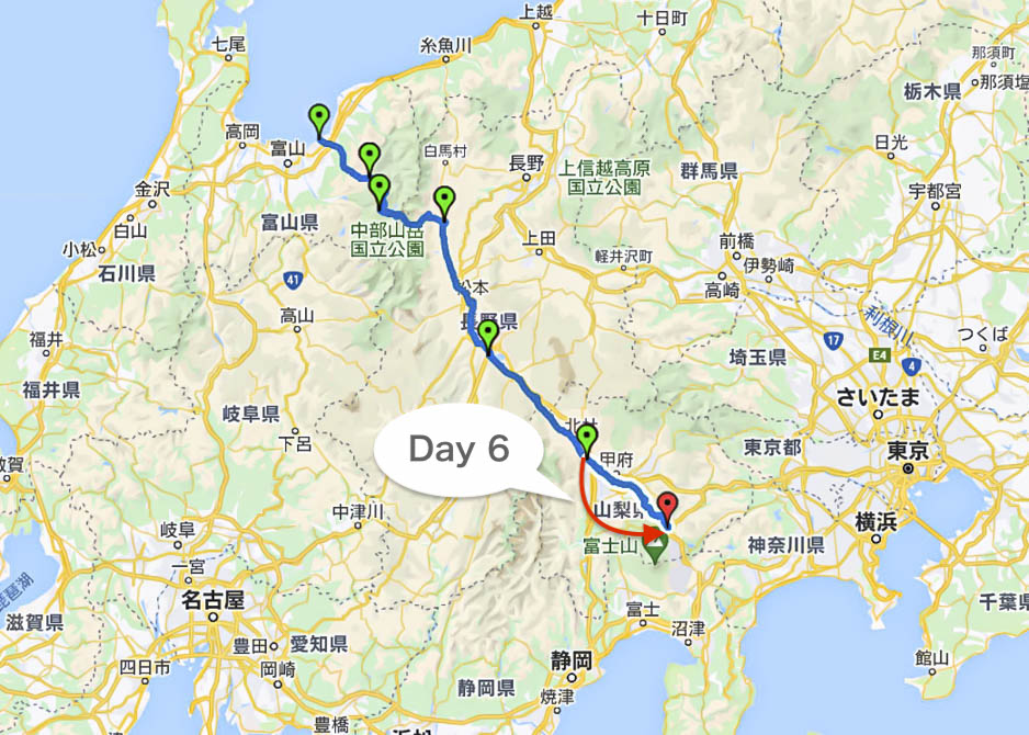 Day 6 :韮崎〜河口湖