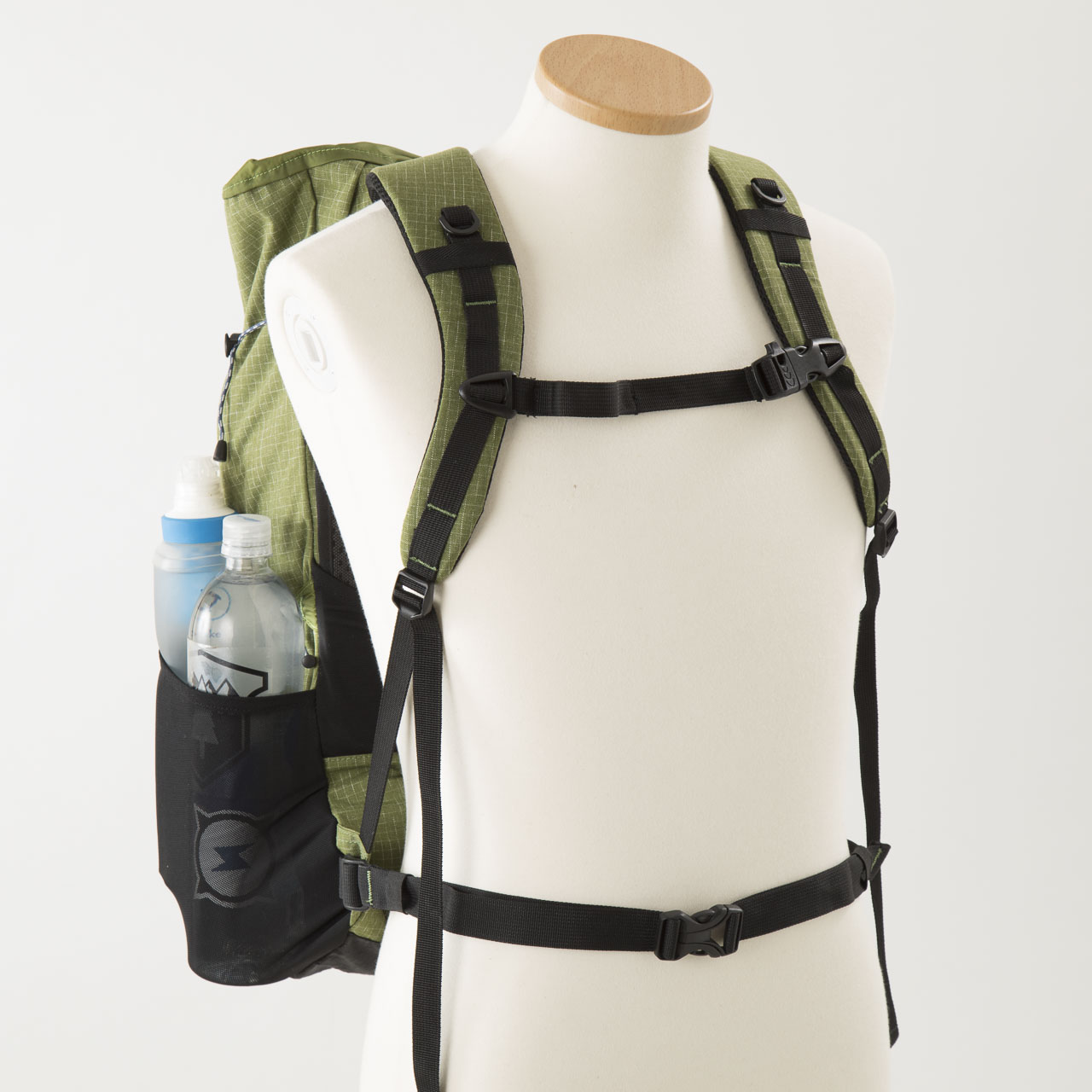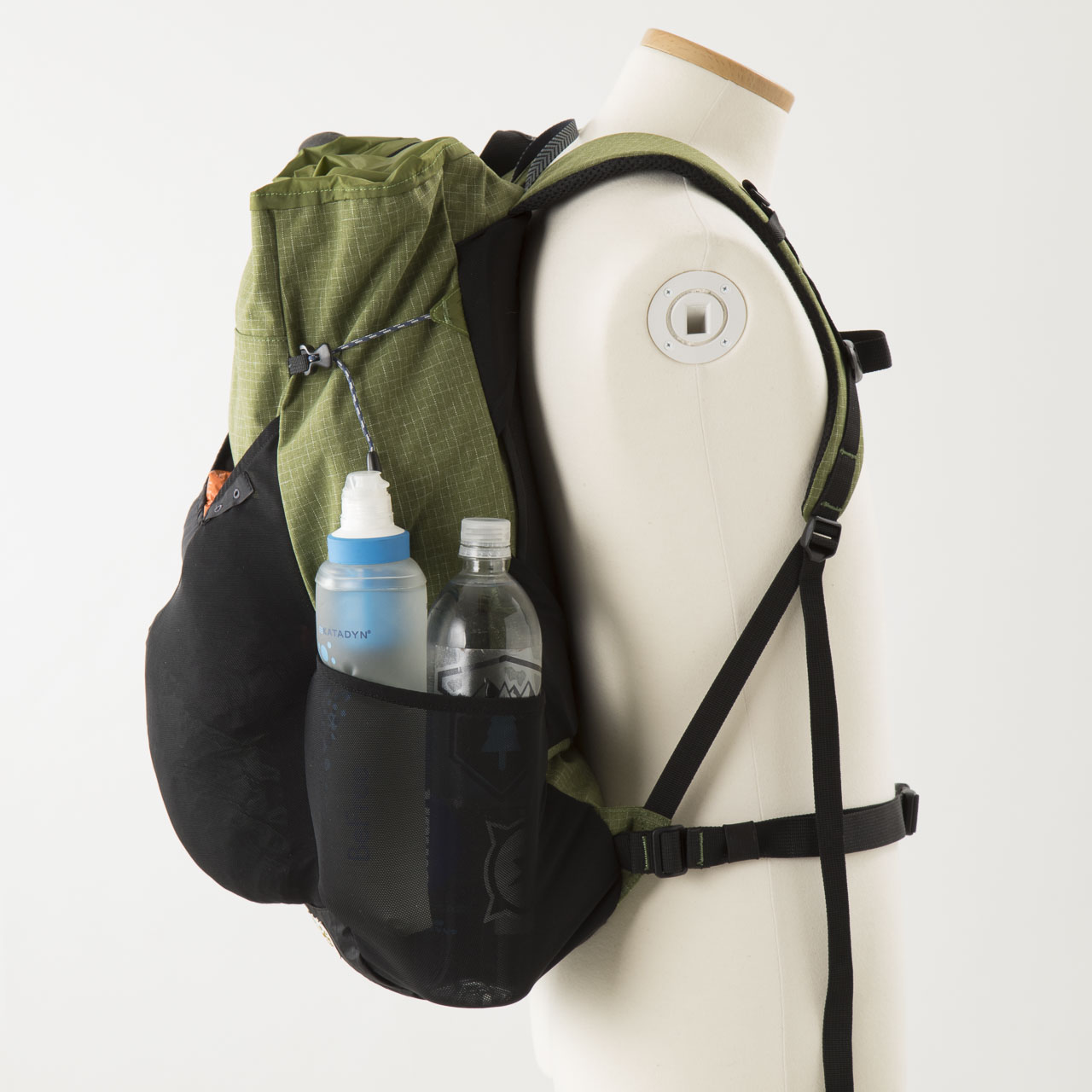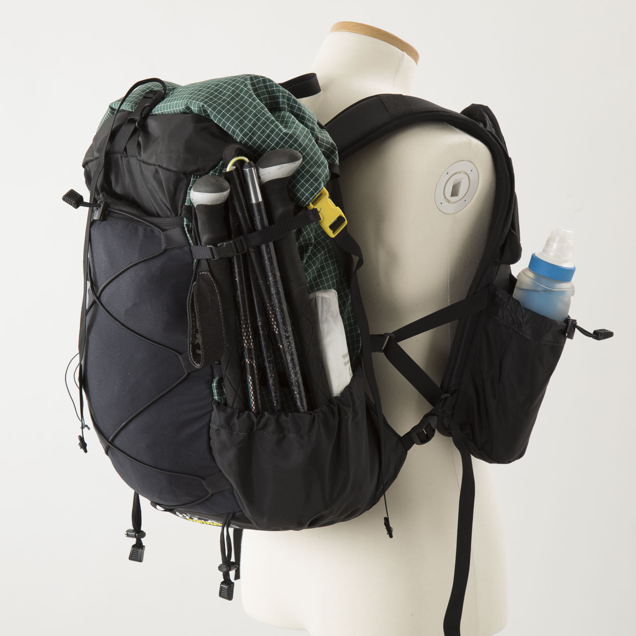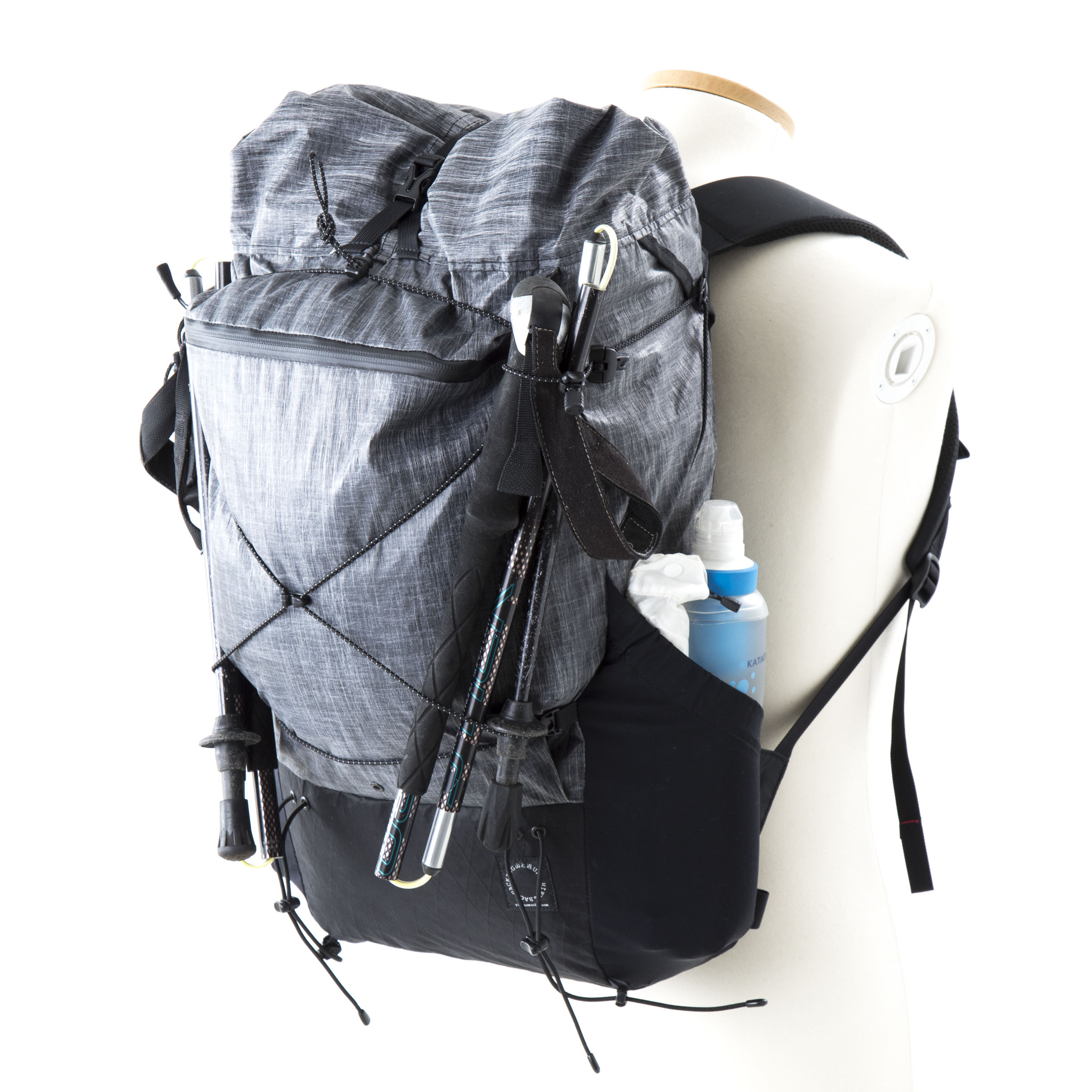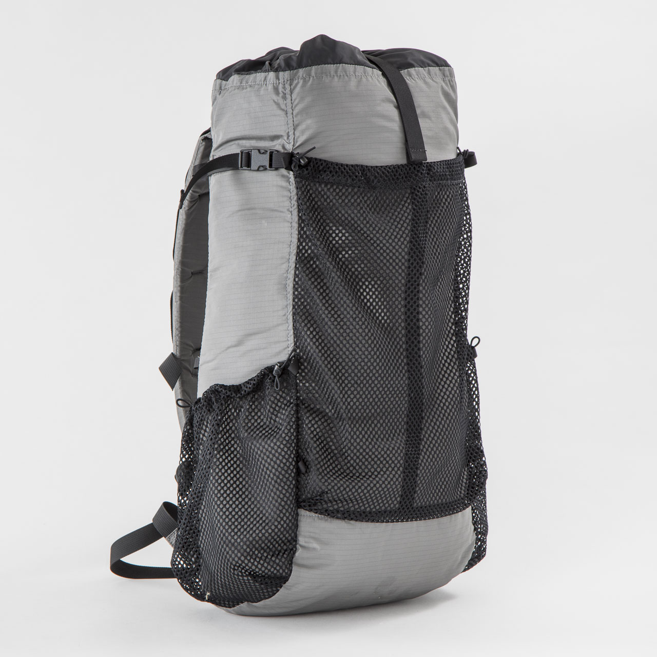 本体生地の30デニールバリスティック・ナイロン・リップストップは今回集めたバックパックの中でももっとも軽量で薄い素材を採用し、雨蓋はあるものの、フロント&サイドポケットを備えたその外観はモンベルからのULバックパックへの回答とも言えるのではないでしょうか