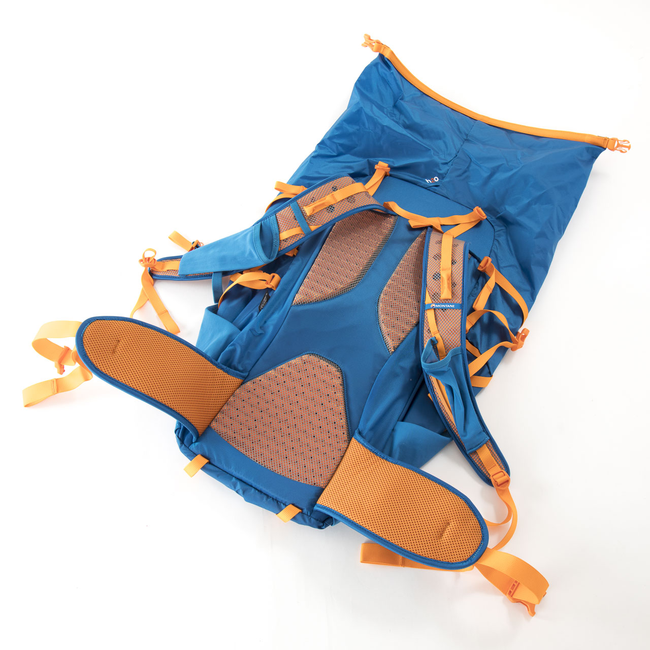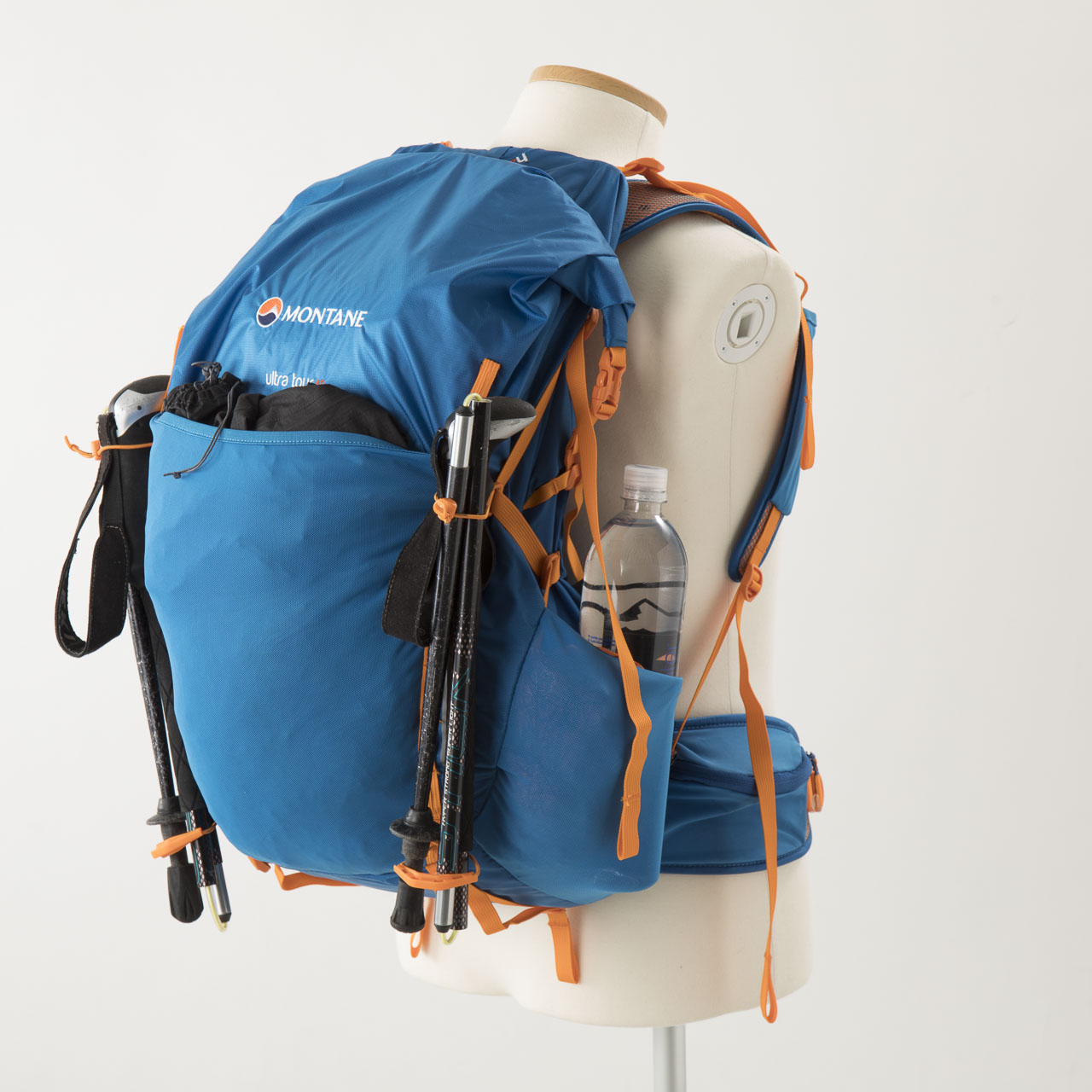 続いてモンテインのファストパッキング用バックパックで最大のモデル、ウルトラツアー40です。まず、アジャスターなど他で見たことのないパーツが多用された質感の高さは特筆すべきで、これで定価16000円(税抜き)は明らかに安い!