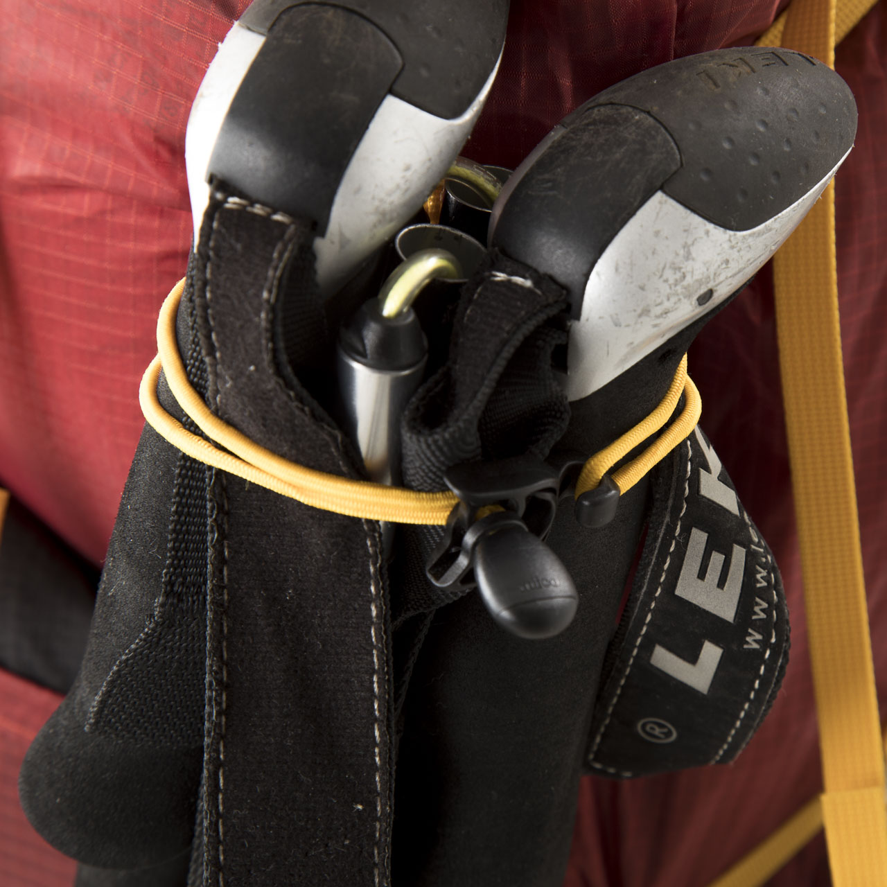 そのままだとポールも付ける場所がないのは残念ですが、デイジーチェーンのおかげで拡張性は高いので、自分でバンジーコードやボトルホルダーなどを取り付けカスタマイズすることで、理想のバックパックに近づけることができます。そういった意味で、ユーザーに強い目的意識と経験値を要求するバックパックであるように感じます。