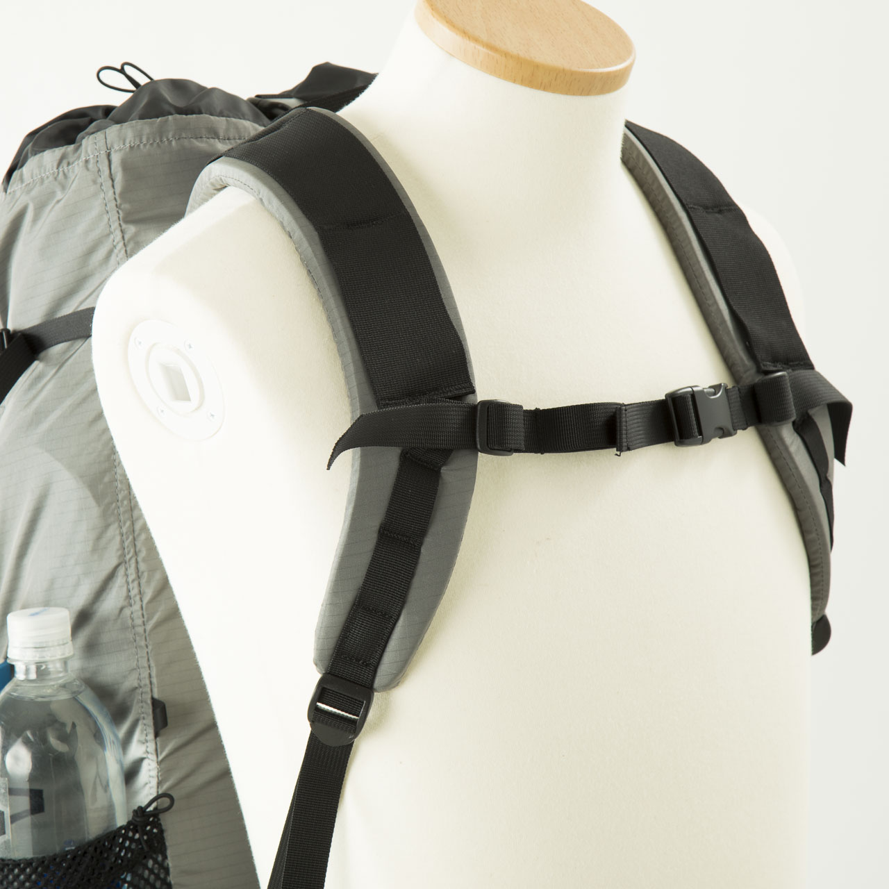 ただ、いかんせん女性用を意識しすぎたためか、自分にはショルダーストラップが細すぎると感じました。女性の体には合うのかもしれませんが、自分にはストラップ幅が細すぎて、6.8kgほどの重量でも背負った瞬間に少し肩に食い込む感覚がありました。