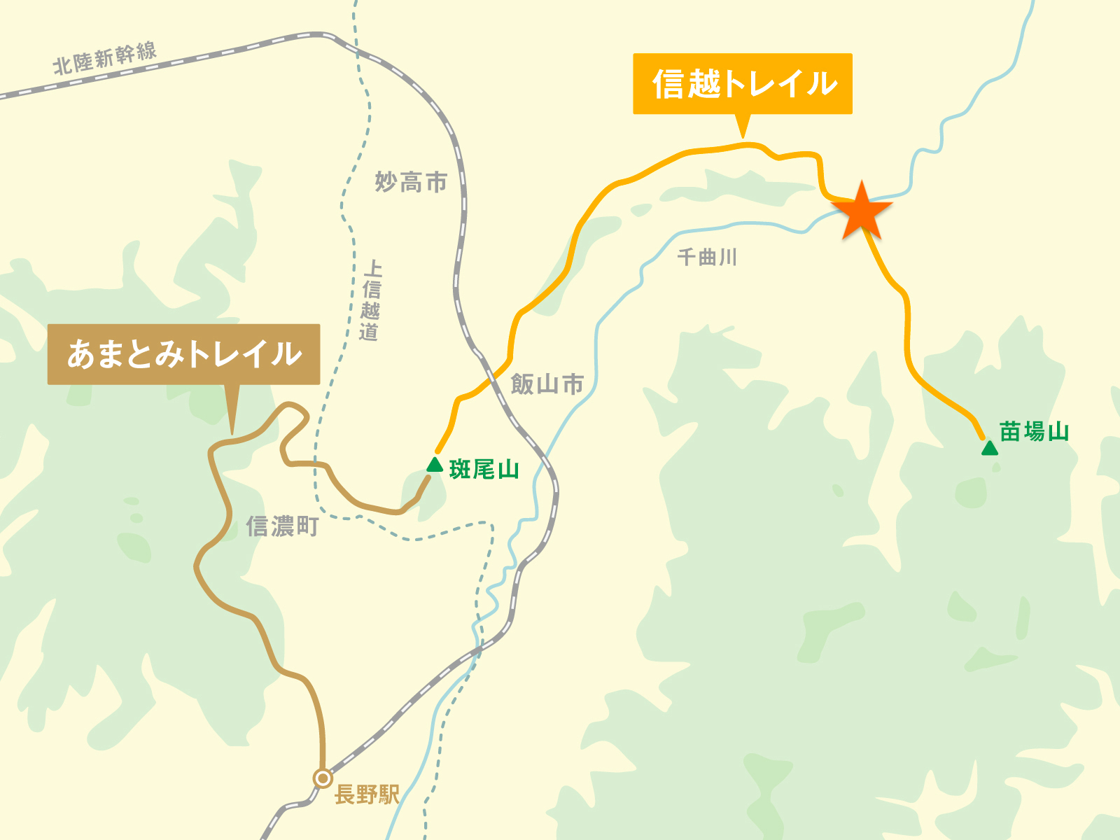 あまとみトレイル〜信越トレイルのマップと現在地(★)