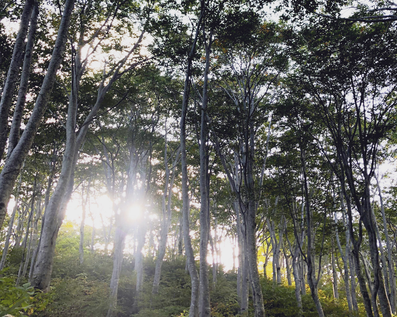 延伸ルートに胸を躍らせ天水山を後にした。朝の光に照らされたブナの森は美しく、雨のハイキングとなった信越トレイルの序盤、終盤にこんなに素晴らしい森を見せられてしまうと、抜けてしまうことがとても切なく感じてしまう。
