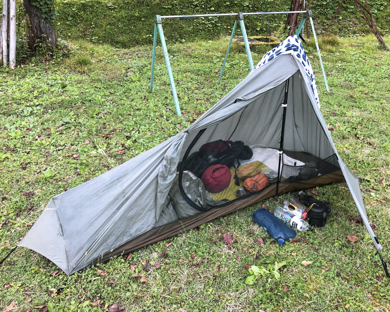 翌朝、ゆっくりと目を覚ますといつもと同じテント内の景色が広がり、テントは風に当たってサラサラと音を立てていた。あれだけ雨が降ったのに水滴ひとつ付いていない。信越トレイル3日目。野々海高原テントサイトでの朝は清々しい気持ちだった。夜の嵐が去り、この場所が風の通り道になっていたのか、テントは洗濯から脱水、乾燥機までかけたかのようにサラッサラの状態だ。