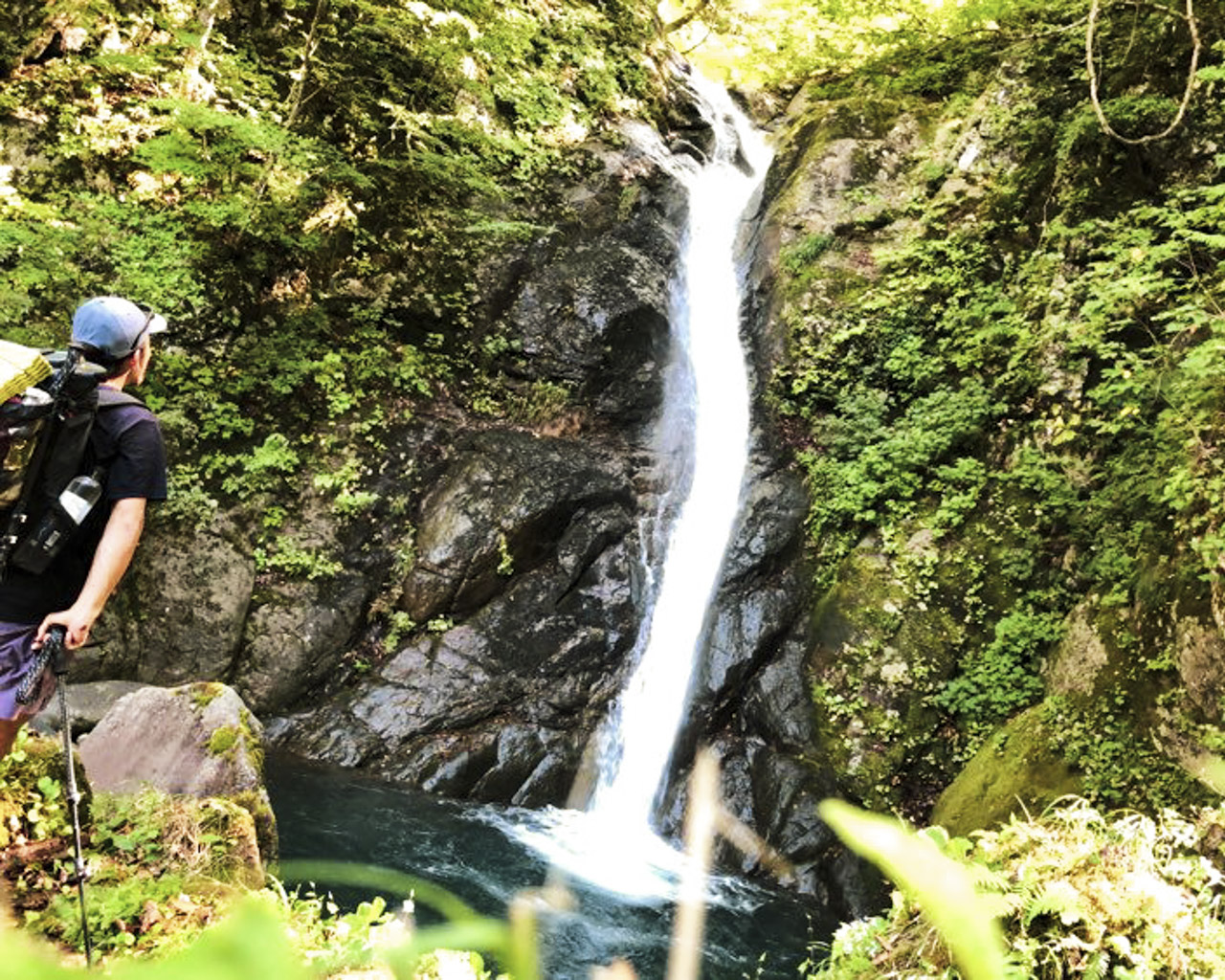 10時14分。1本の滝が見えてきた。滝壺のサイズ感がちょうどよく真夏なら確実に飛び込んでいるだろうな、なんて思いながらひと休みしていた。