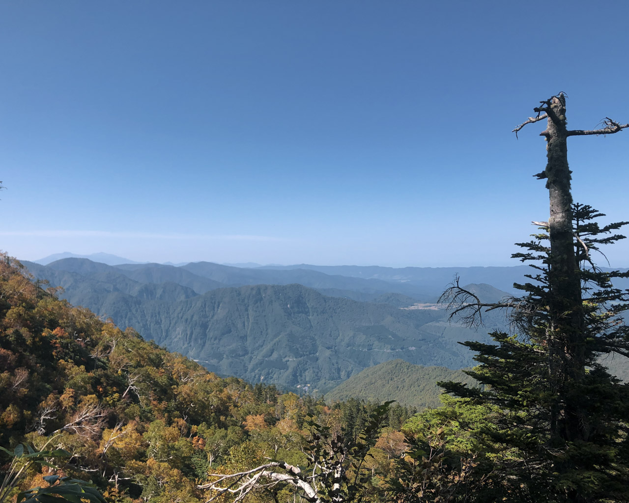 あの尾根を何日も歩いてきたんだと思うと、旅がもうすぐ終わってしまう実感が湧いてきた。逆に苗場山から歩いたハイカーは、これから歩く関田山脈を見てどんなことを思うのだろう。こんな場所で同じトレイルを歩くハイカーとすれ違ってみたいものだが、僕は誰とも会えずにひとりそんなことを考えていた。