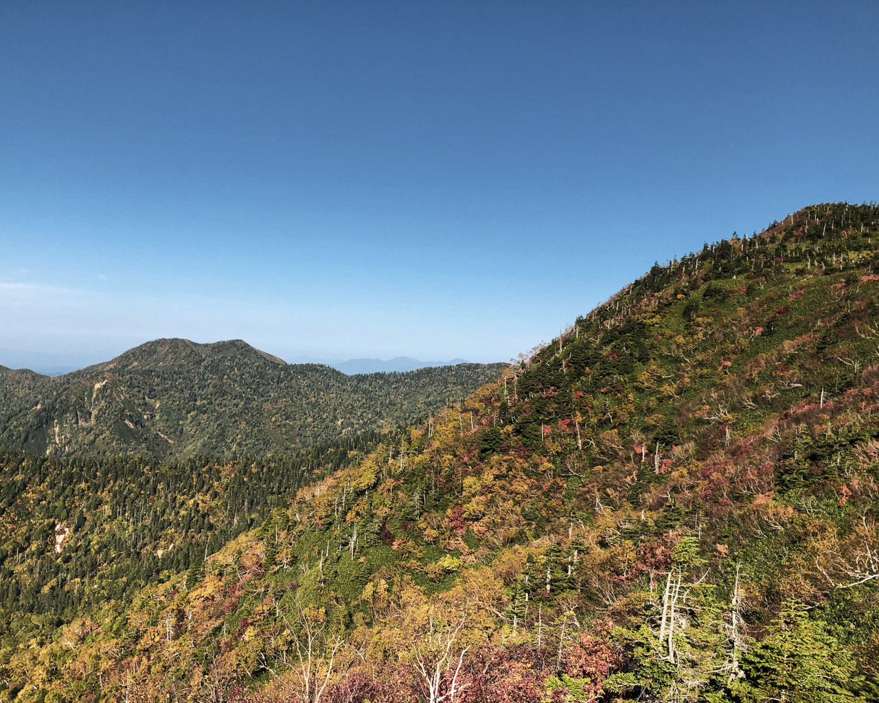 そう話すと、男性は満足そうな笑みでゆっくりと登山道に歩いて行った。紅葉シーズンの苗場山は近隣の登山者から大人気なのだろう。3合目から山頂までは5kmもない。2時間もあれば着いてしまうだろう。時刻は11時ちょうど。急ぐ必要もない。ゆっくりと旅の終わりを味わいながら登るとしよう。