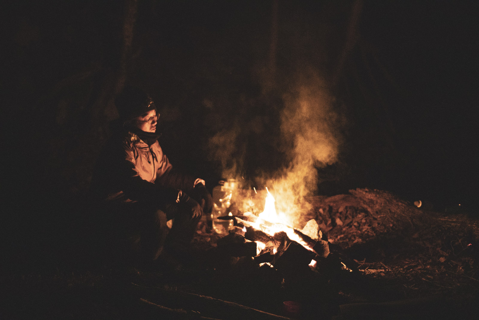 疲労困憊していたが、なだらかで歩きやすい道と日没前の光の美しさに癒されたか、気持ちよく2時間ほど歩き、当初の予定通り茶屋の跡地に整地されたキャンプ適地を見つけた。テントを張るとすぐに真っ暗闇になり、あまりの静けさに、この旅ではじめて本当にひとりぼっちになったことを感じた。