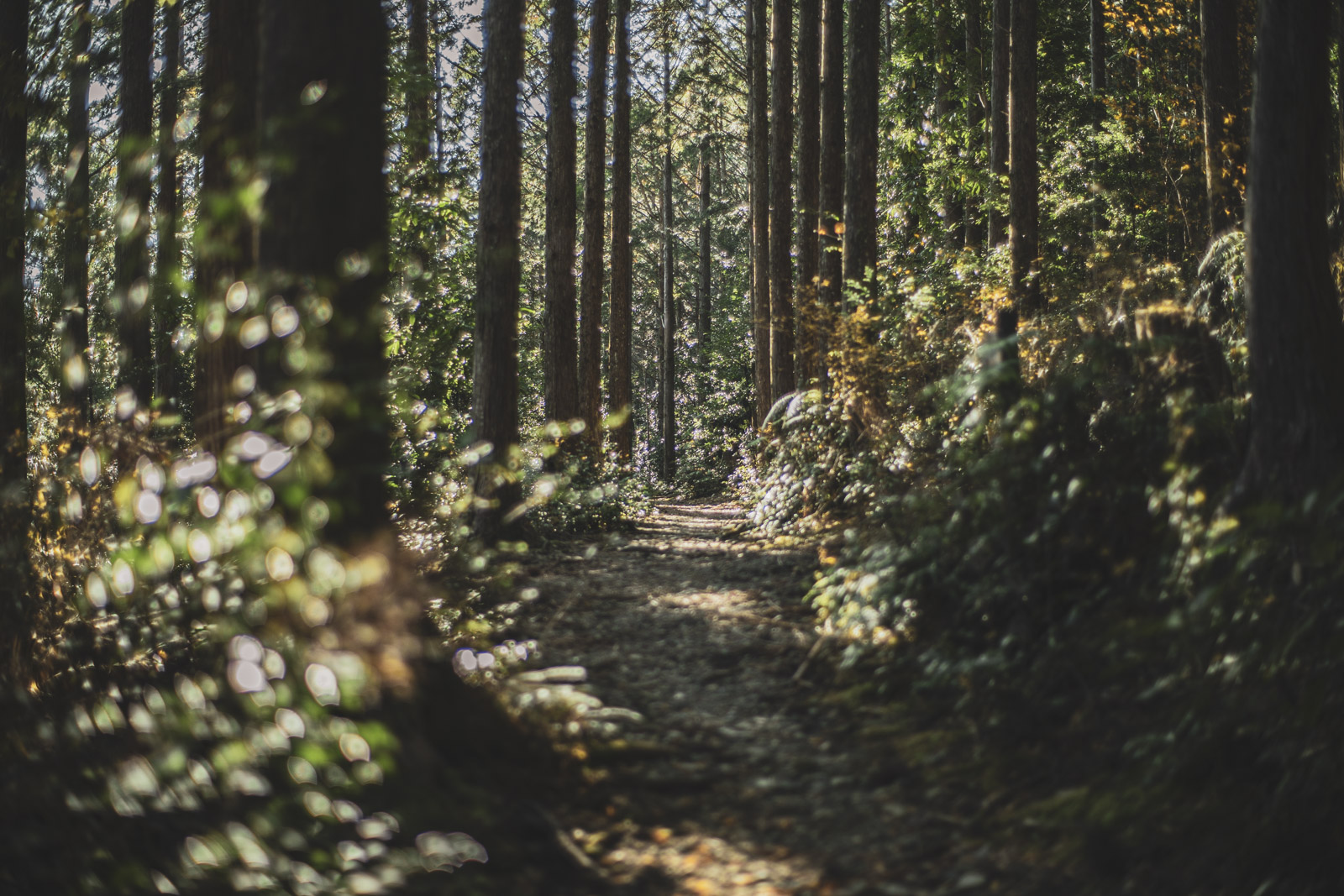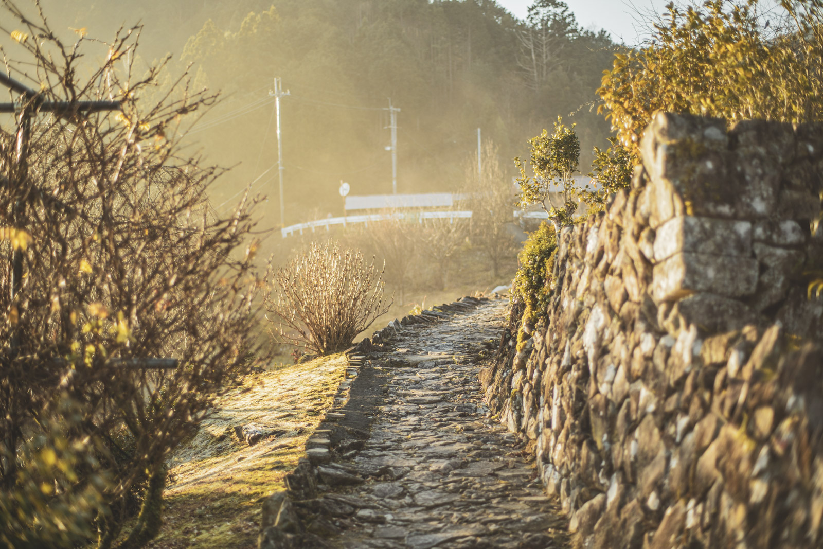 景色はほんとに地味で、5割が植林の杉林、2割が舗装路の上だけど、朝や夕方、光が綺麗な時間帯には、ハッとするほど美しい瞬間を目にすることがある。骨伝導イヤフォンでブライアン・イーノのアンビエントミュージックやキース・ジャレットのピアノソロを聴きながら歩いていると、音楽と環境音が完璧にミックスされて自分が景色の一部になったような気分になり、胸が震えるほど感動したりしてる。