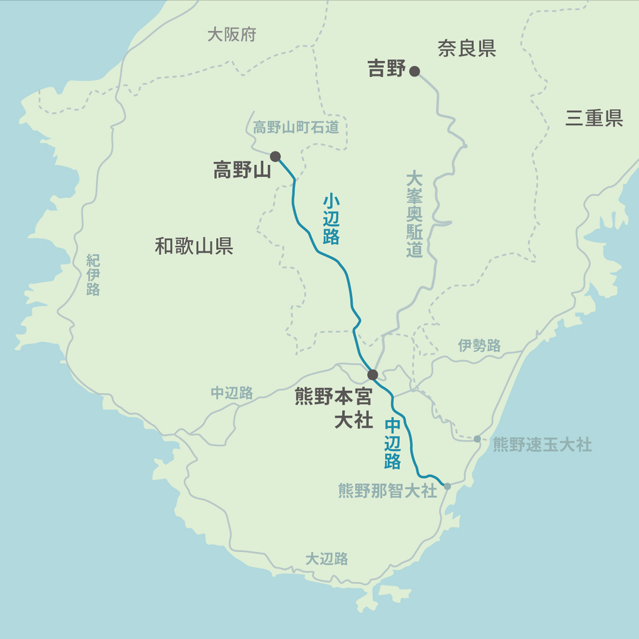 ともあれ、ひと口に熊野と言っても道はたくさんある。奈良の高野山から熊野本宮までを繋ぐ小辺路か、紀伊田辺から熊野本宮〜那智大社まで続く中辺路か、吉野から熊野本宮まで険しい山ルートを行く大峯奥駈道か。