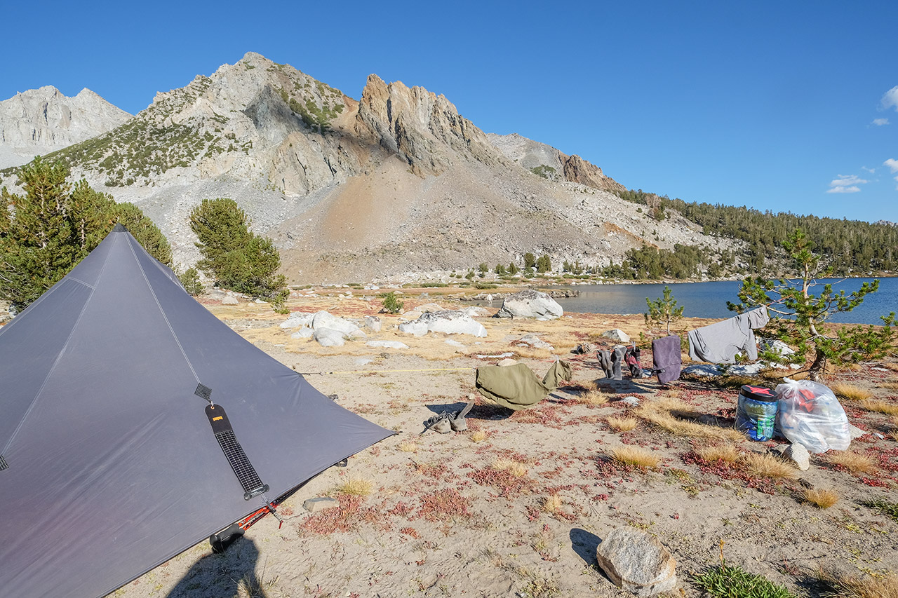 この日の行動時間をあと1時間半ほど残してアルガー・レイクの湖畔で一休みしてるとき、立ち上がれないくらいの猛烈な頭痛に襲われた。こんな頭痛は今までのハイキングでは体験したことがなく、きっと高山病になってしまったのだと思う。立ち上がることもできなくなり、赤ちゃんのハイハイのように這いつくばって平らな場所まで移動し、湖畔でテント泊することにした。