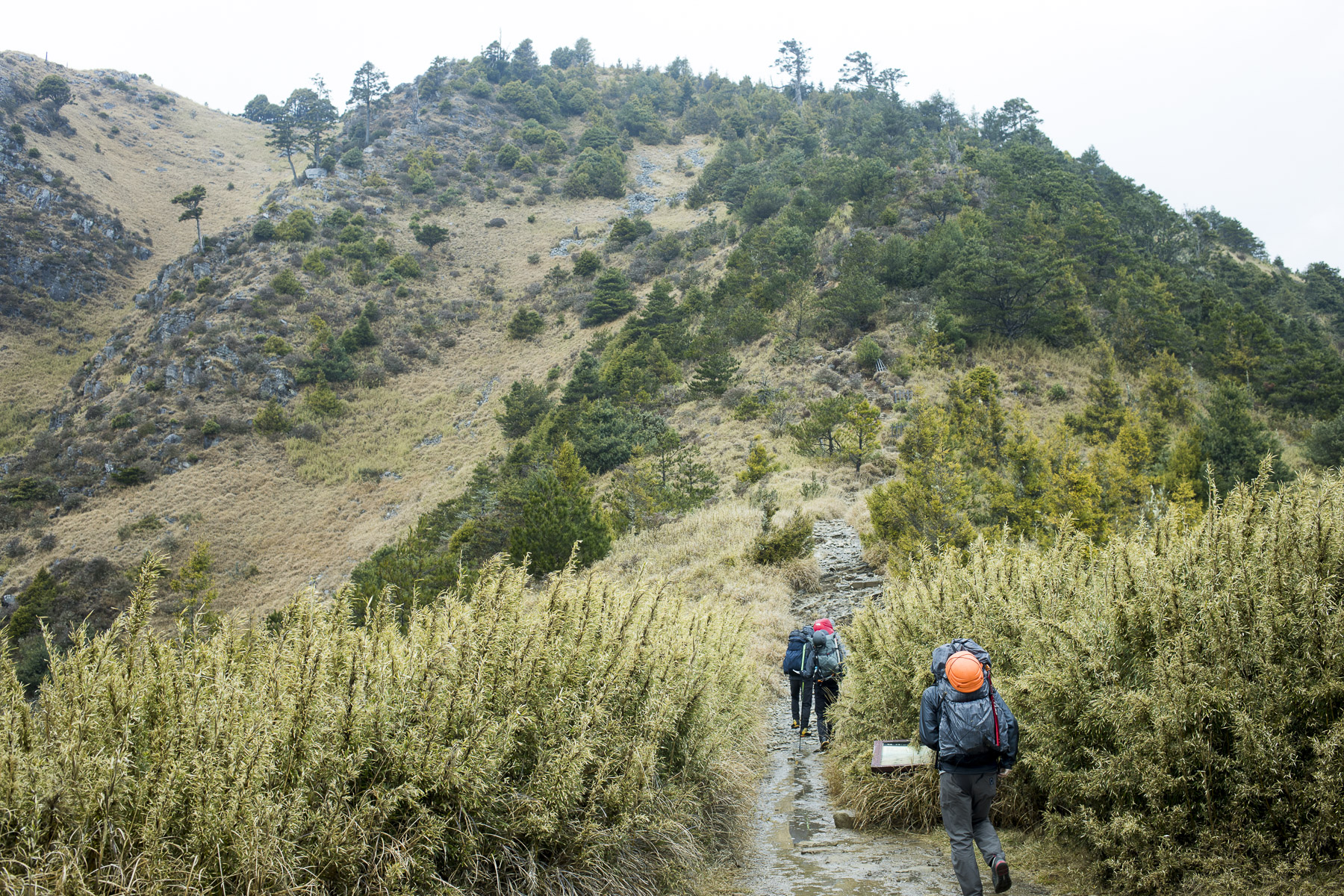 午前9時にようやく歩き始めた。標高はすでに2000mを越えていたけれど景色は日本の低山とあまり変わらず、緯度が低いことを感じた。歩き始めからポツポツと降っていた雨はすぐに本降りになり、一同傘をさして歩く。
