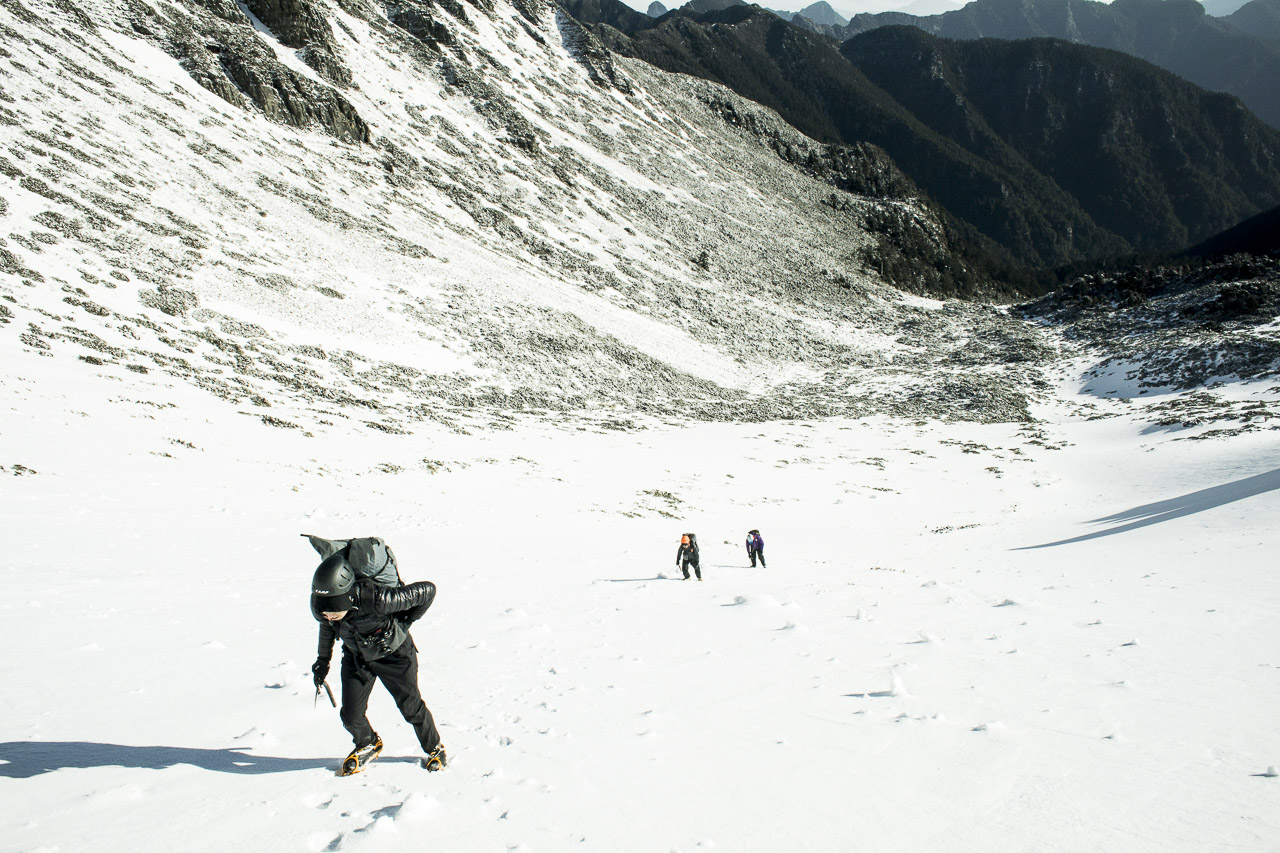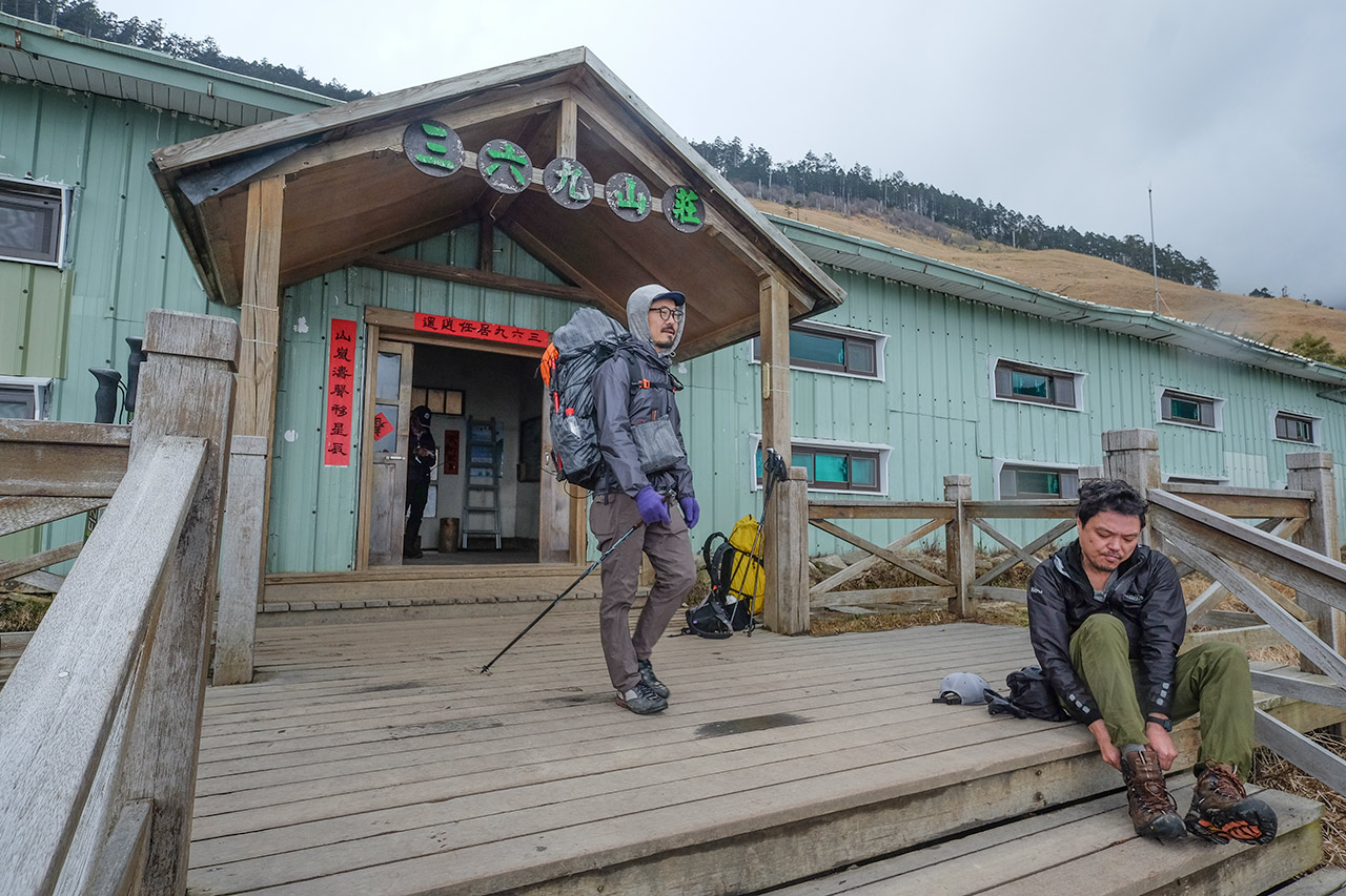 初日、午後3時頃クルマで出発し、移動した先の宣蘭の街で夕食を食べ、さらに数時間移動して登山口まで行き、1時間ほどハイクアップして山小屋に泊まる。2日目、早朝3時に出発して途中で上にあるもう一軒の山小屋に荷物をデポして雪山登頂し、下って先ほどの小屋に泊まる。コースタイムでは13時間ほどの行動時間。3日目、山と道の製品写真の撮影をしつつ4時間ほど歩いて再び登山口に下る。