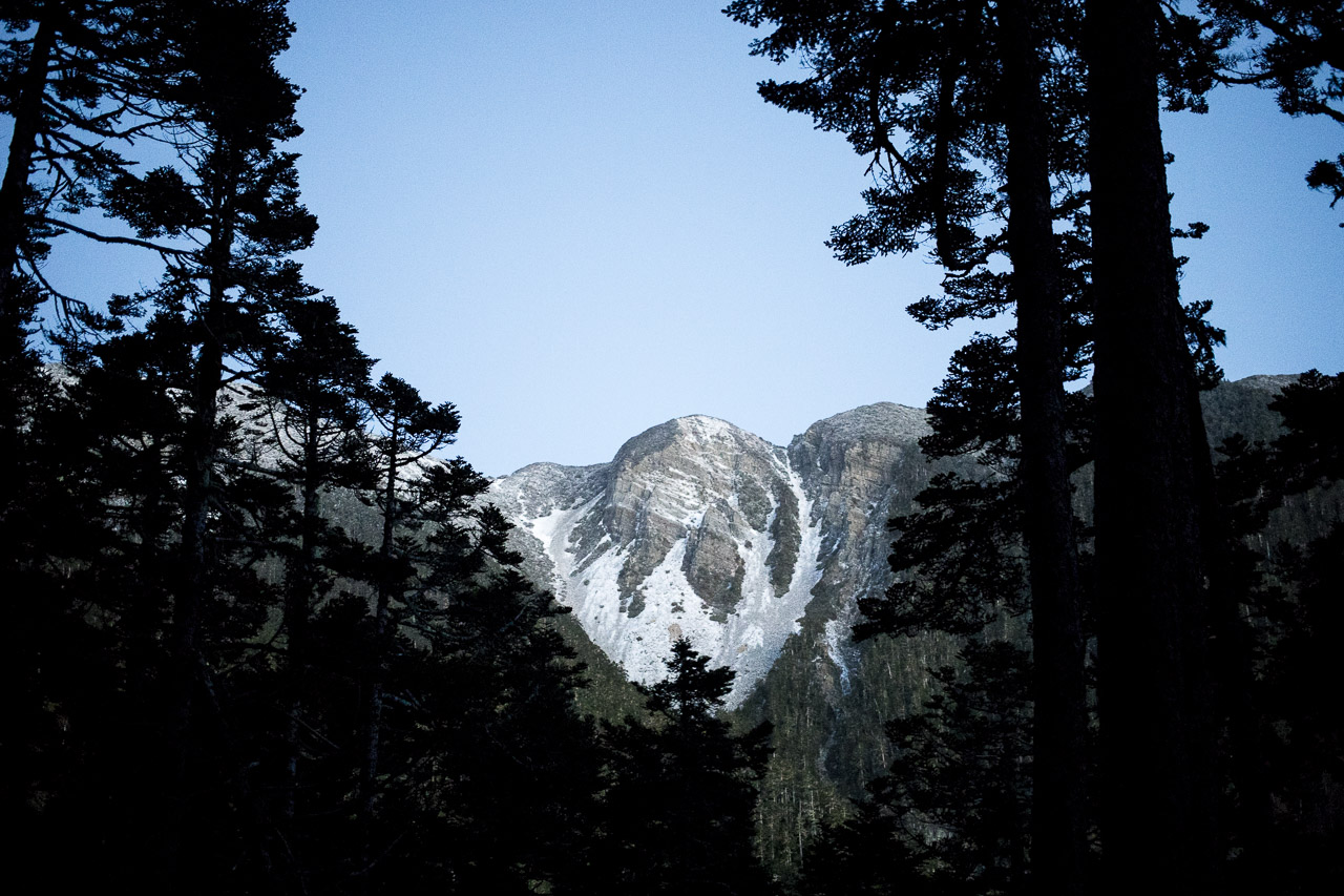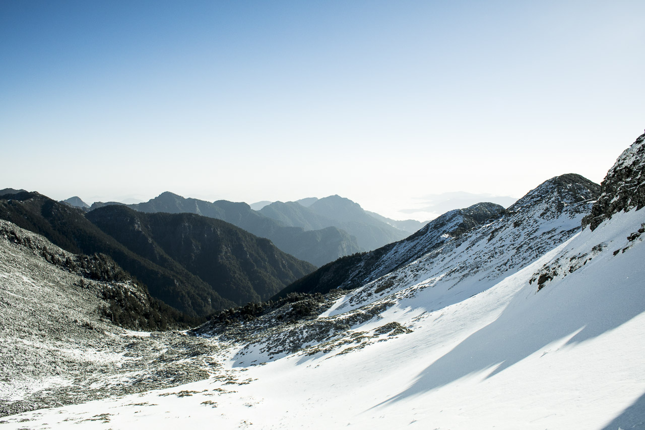 雪山を思い返す。盆栽のような寂感のある杉の巨木や、木々の間から見えた巨大な岩肌。美しいカール地形…。頂上からは3000mを越える山々が山脈として広がっていて、目の前には以前登った南湖大山を含む全長340kmの中央山脈が遠くまで伸びていた。日本の山よりも少しスケールが大きくて、過去に自分が歩いた山だと、JMTのシエラ山脈の大きさに似ている気がした。