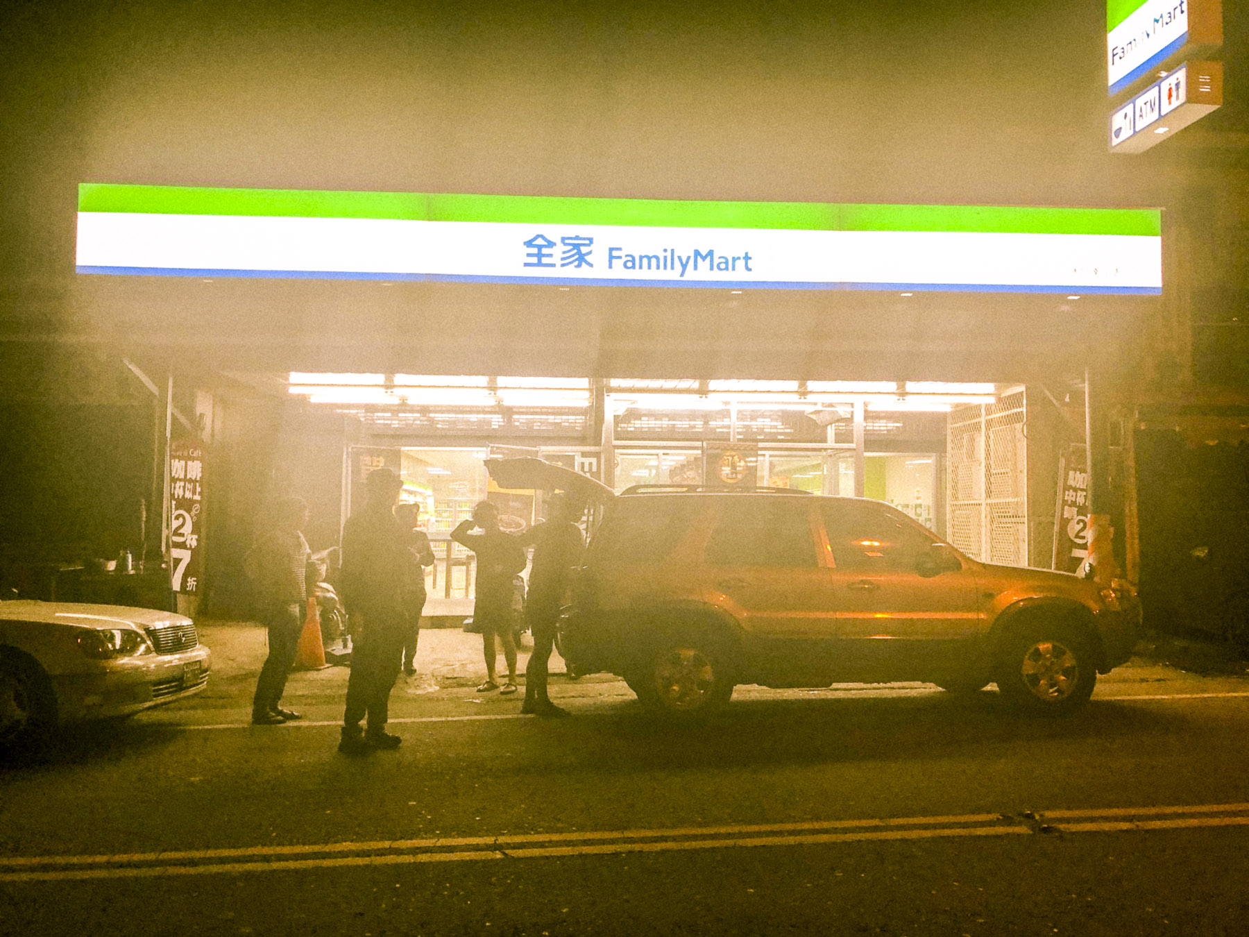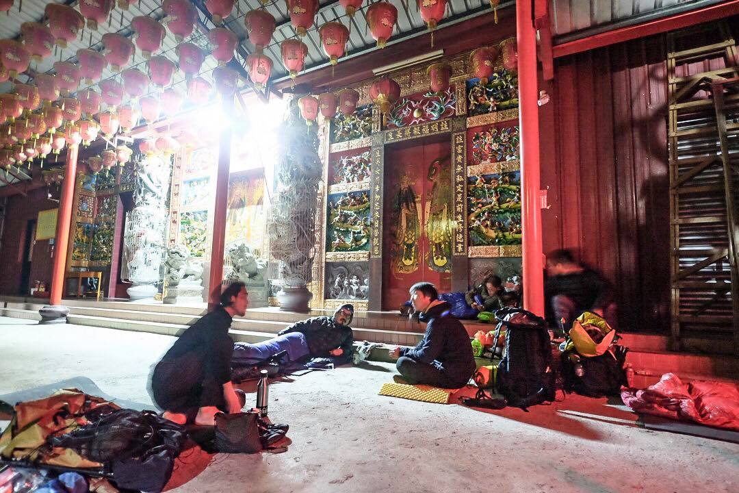 午後10時頃、宿場町のコンビニで休憩した際、今日は山小屋まで行くことは諦め、この先の寺の軒下で泊まろうという話になった。なんと、台湾では旅人は寺の軒下で泊まることができるのだ(もちろん数十元ほどのお布施は収めること)。