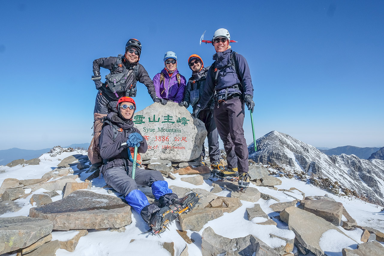 クランポンに履き替えて1時間ほど、ついに雪山の山頂まで登頂することができた。山頂からは台南の山々を見渡せたけど、雪山以外にはほとんど雪がついていなかった。 尾根は遥か遠くまで繋がっていて、尾根を伝ってどこまでも歩いていけるようだった。