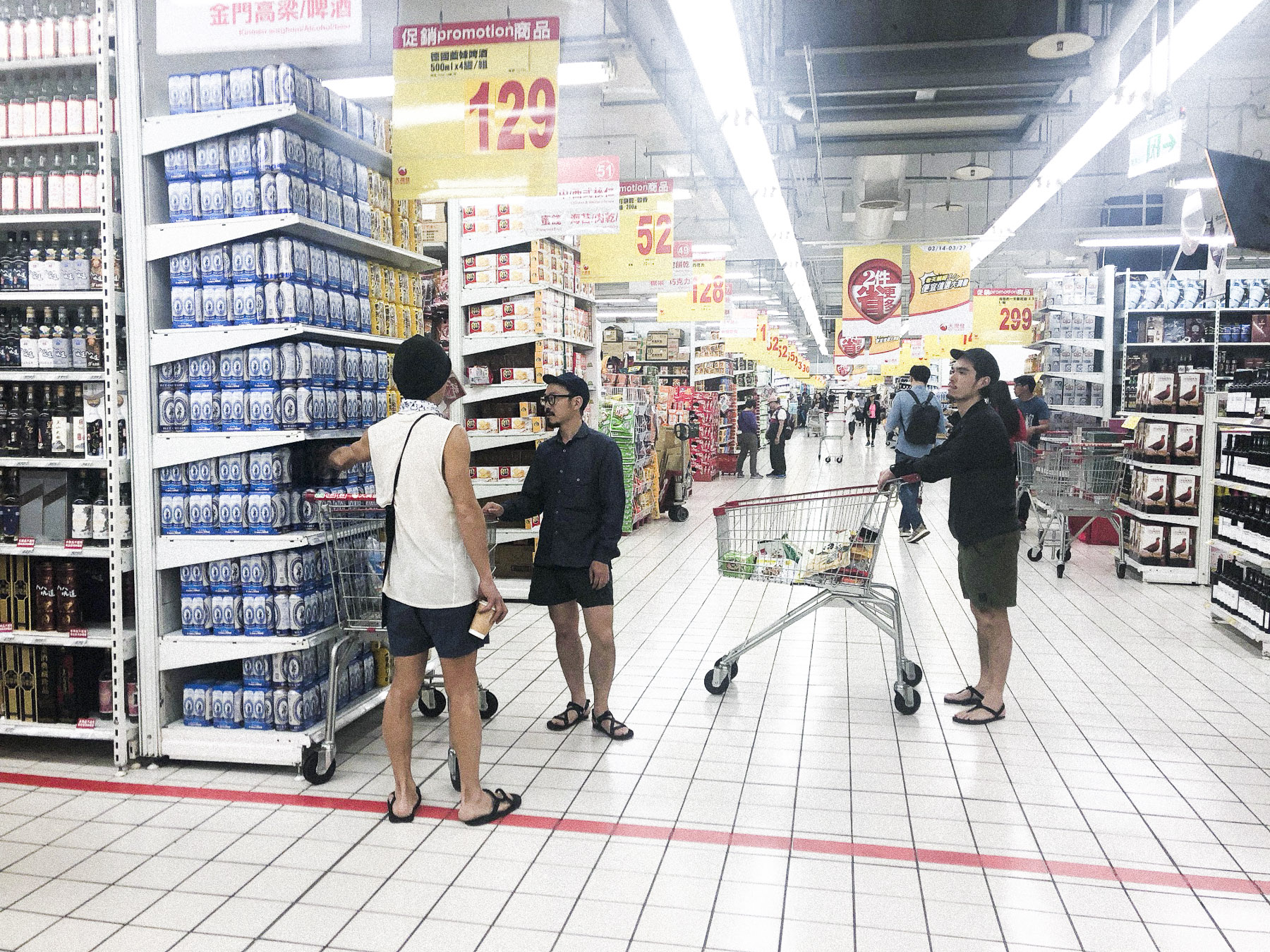もう部屋はチェックアウトしてしまっていたので、COW RECORDSに荷物を預けて、台湾版「コストコ」のようなスーパーに食料を買い出しに行った。トレイルフードに最適なインスタント麺やドライフルーツ、ビーフジャーキーなどの台湾版が山ほどあり、一同大いに興奮。食べきれないほどの食料を買う。