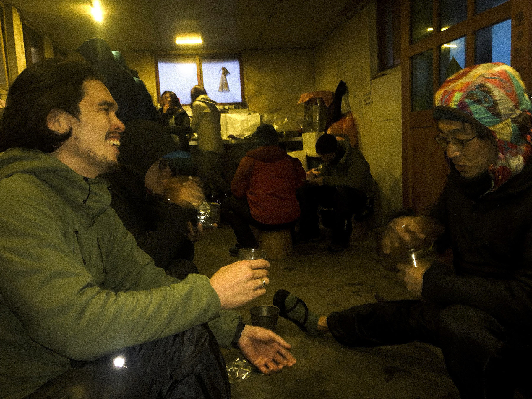 一度やんだ雨がまた降り始め、キッチンでの酒盛りとなり、それは深夜までずっと続いた。雨の中、ネズミが走り回る標高3100mのキッチンに東アジア各国から集まった人々が15人ほど集まっている雰囲気は悪くなかった。いろんなことを話したのだけど、残念ながら全部忘れてしまった。とにかく楽しかったことだけは覚えている。
