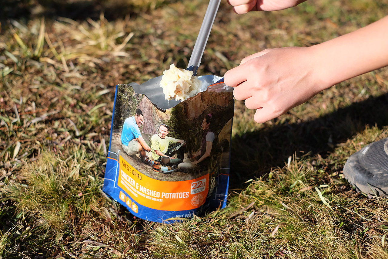 こちらは海外のアウトドアショップやアウトドアサイトなどで見かけるポピュラーなフリーズドライフード。このハイキングで初めて食べてみた。あまり美味しくなさそうなパッケージとは裏腹に僕はかなり気に入った。マッシュポテト&チキン、スパゲティミートソ ース、ラザニア、チキンフライドライス。まだまだ色々な味があるのだけれど、日本で売 られているドライフードよりはるかにおいしと思った。夜のメインはこのドライフードで、1袋(2人分入っている)を2人でシェアする。