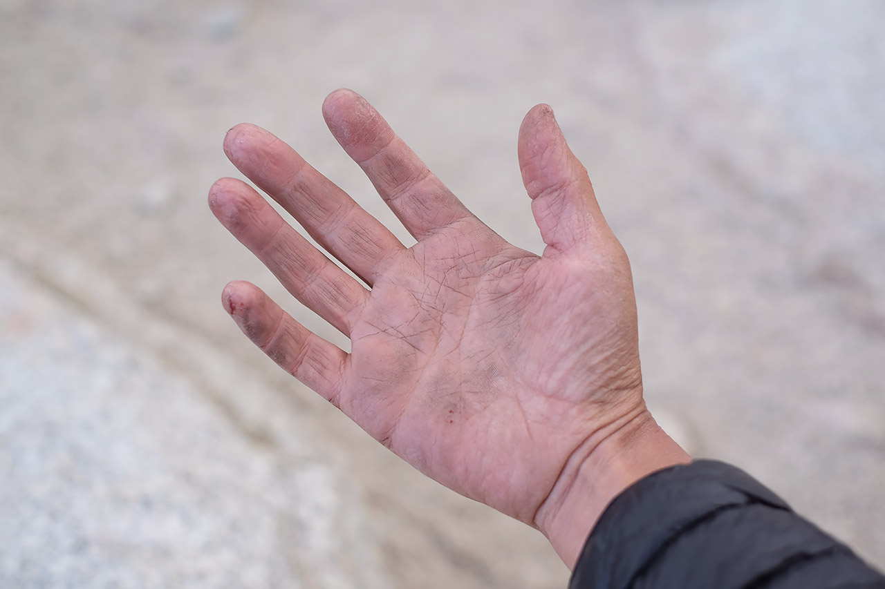 指先が乾燥で2箇所ひび割れてしまった。これは生まれて初めての体験だった。ワセリンを塗りこみ絆創膏でケアした。僕はたまに左膝が痛むことがあるのだけれど、それも少しずつ出てきた。ゴールまでもってくれるか、少し心配になる。