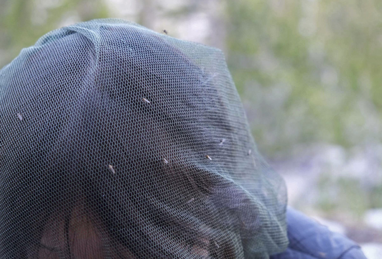 時期によって水辺に大量発生する蚊は、ハイク中に出会うと鬱陶しいことこの上ない。 そんな時はこのネットカバーの出番で、見た目はイマイチだけど効果あり。 蚊は人間の体温に反応して集まってくるので戦ってもキリがない。無視が正解。 軽いし、高価なものではないので、お守り代わりに毎回必ず持っていく。 蚊は雪解けが進む6~7月にかけて特に多いような気がする。逆に乾燥する時期が続くと一匹もいない場合もある。