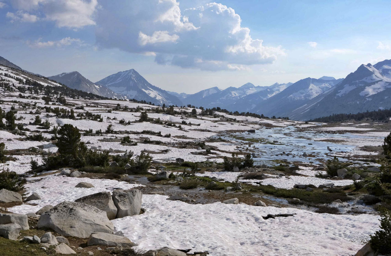 実際、2015年のハイク時は予定していたバーミリオンバレーリゾートまで辿り着けず、手前のフローレンスレイクでトレイルアウト。更に2017年の時も「今世紀最大の積雪」により、残雪と渡渉に苦戦。タブースパストレイルというマイナーなルートを使ってエスケープした。 参考までに、自分たちの歩行距離は1日に15~25km程度(標高差や残雪、渡渉の有無によって異なる)。歩く時間は初日と最終日を除くと朝8時~夕方5時位まで。