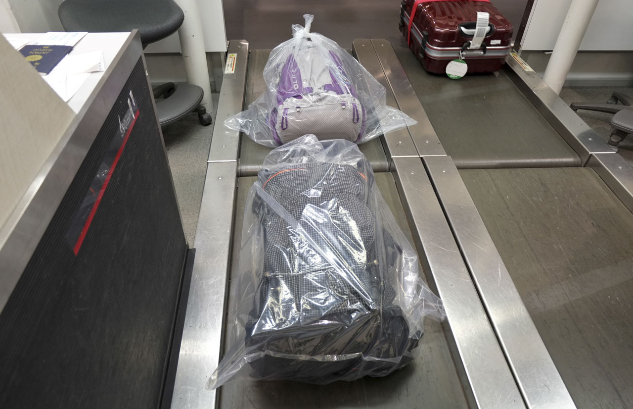 大型のバックパックは機内持ち込みできないため、90Lサイズのゴミ袋で覆って預けている(バックパックの内側にはハーフサイズのロールマットを丸めて緩衝剤代わりに)。ハイク中は雨対策のパックライナーとして活用。 地味だけどこれはマスト! 行きと帰り用に2枚持参している。