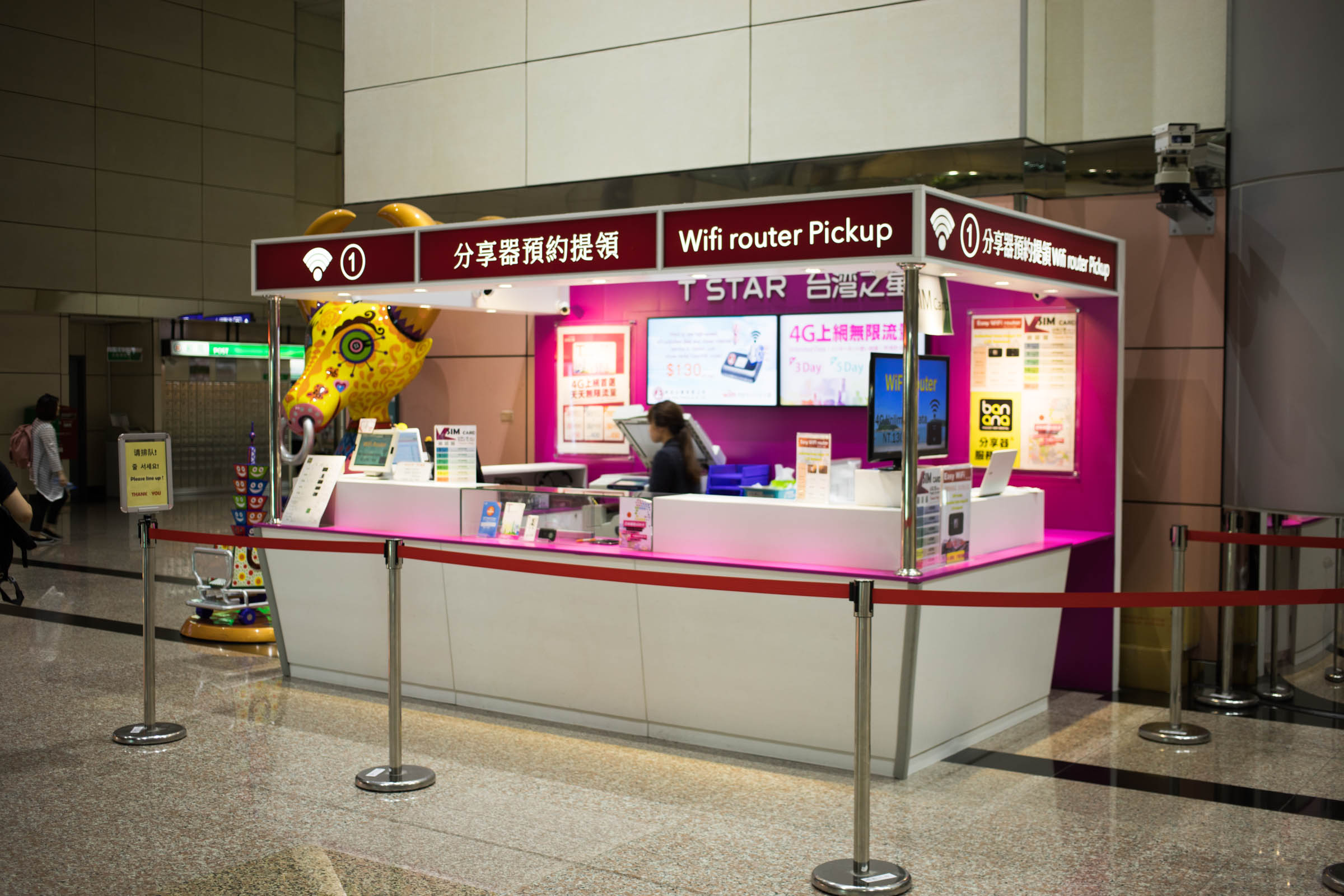 桃園空港内にあるwifiルーターのレンタルショップ。(写真:三田正明)