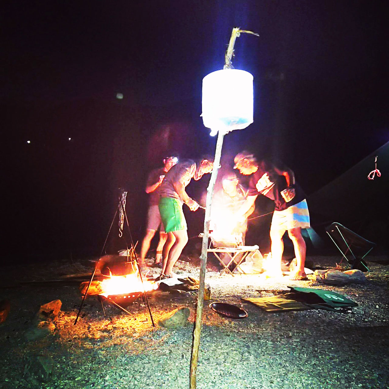HLC四国ではSUPを使って遊んで、ビーチキャンプを行います。シュノーケリングしたり、釣った魚で自炊したり、焚火をしたり、夏休み最後に最高のひと時を味わえることでしょう。