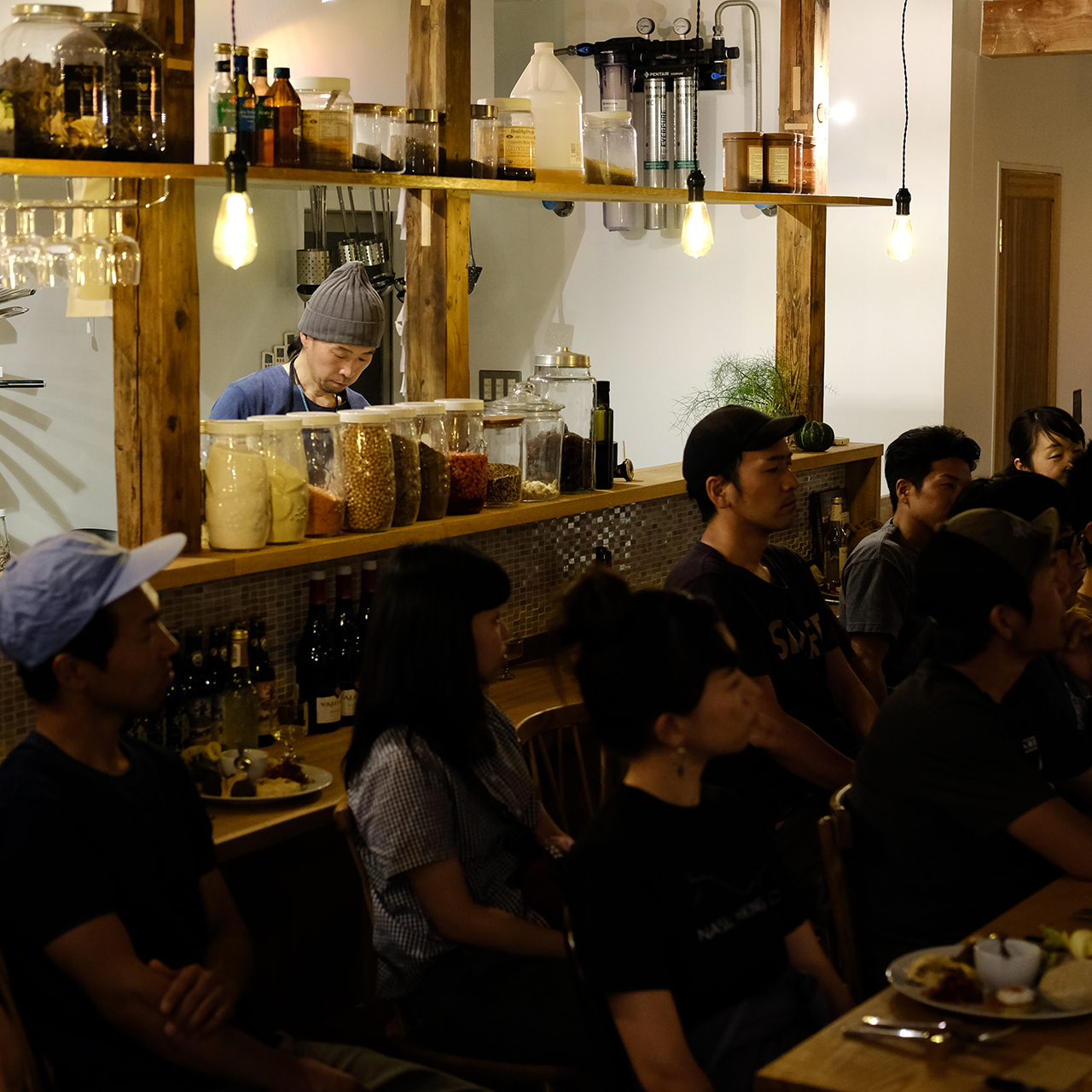 釣りがきっかけで少年時代から山や自然と親しんできた薄井シェフは、レイチェル・カーソン『沈黙の春』との出会いから「釣り」と「環境」の関係を意識し、大学生時代は「環境」について研究したそうです。卒業後、レストランで働いたことで「環境」と「食」が結びつき、さらにスコット・ジュレクの『EAT&RUN 100マイルを走る僕の旅』を読んだことでヴィーガンという生き方を選択し、2017年に黒磯にヴィーガンレストラン『HIKARI SHOKUDO』をオープンされました。