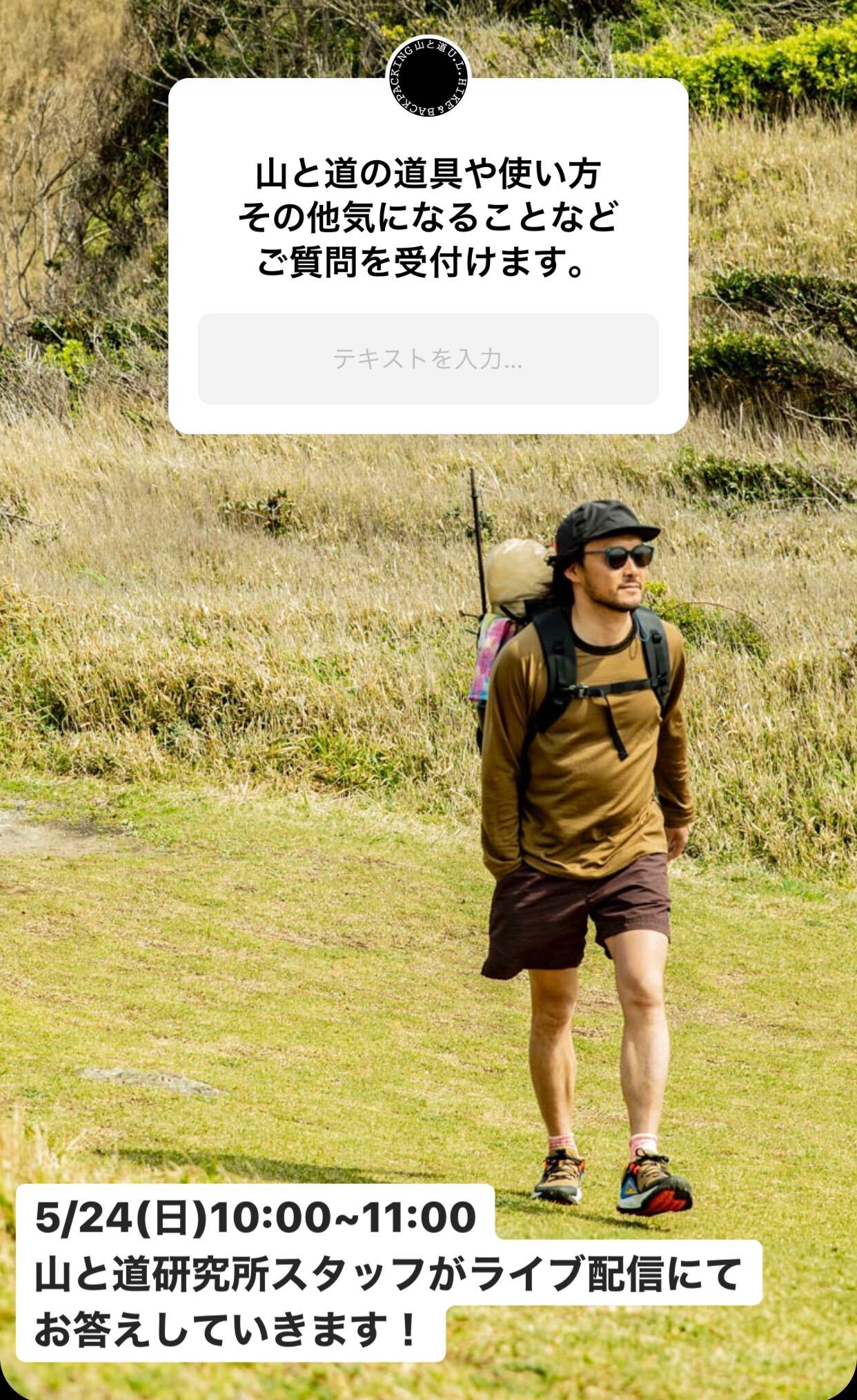 そこで5月24日(日)のインスタグラムでのライブ配信に向け、山と道のInstagramのストーリーより、お客様から山と道製品に関する質問を募集します。