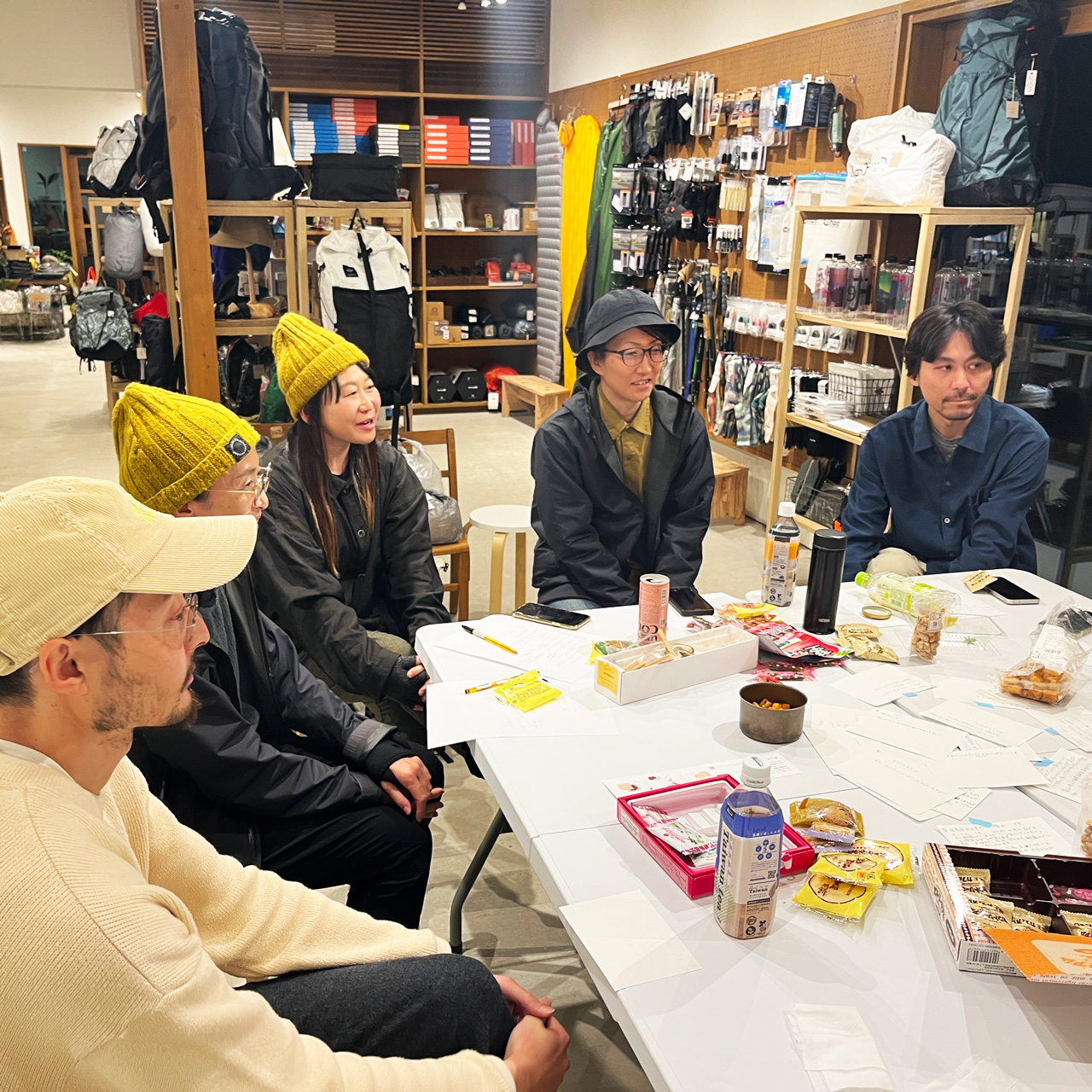 『Knotty』の名前の由来はロープの結びのノット。その名の通りショップには次々と常連さんが訪れ、東北のアウトドアコミュニティの結び目になっています。店主を務めるHLC東北初代アンバサダー上野や妻の明子さんが、お店の営業外の時間でも、お客さんとランニングやスノーボードなど様々なアクティビティに出かけることも日常的です。