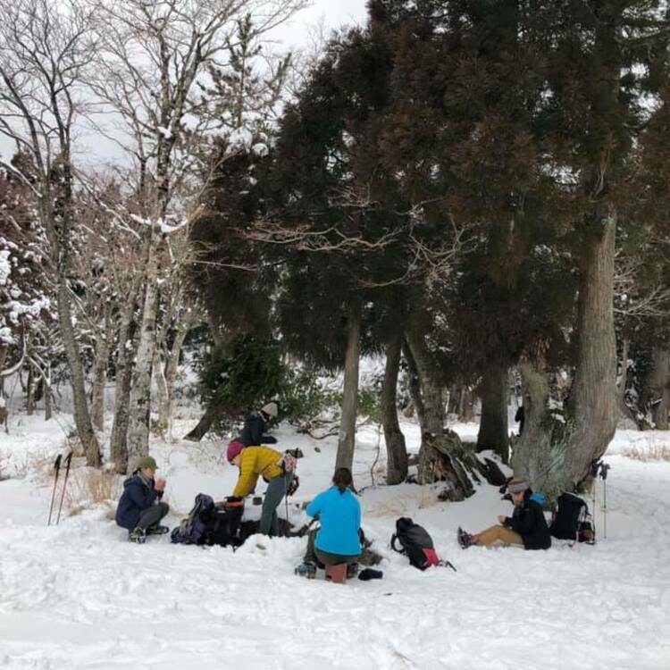 ブナ林が美しい冬季の皿ヶ嶺連峰で、1泊2日のスノーハイキング&キャンピングを行います。