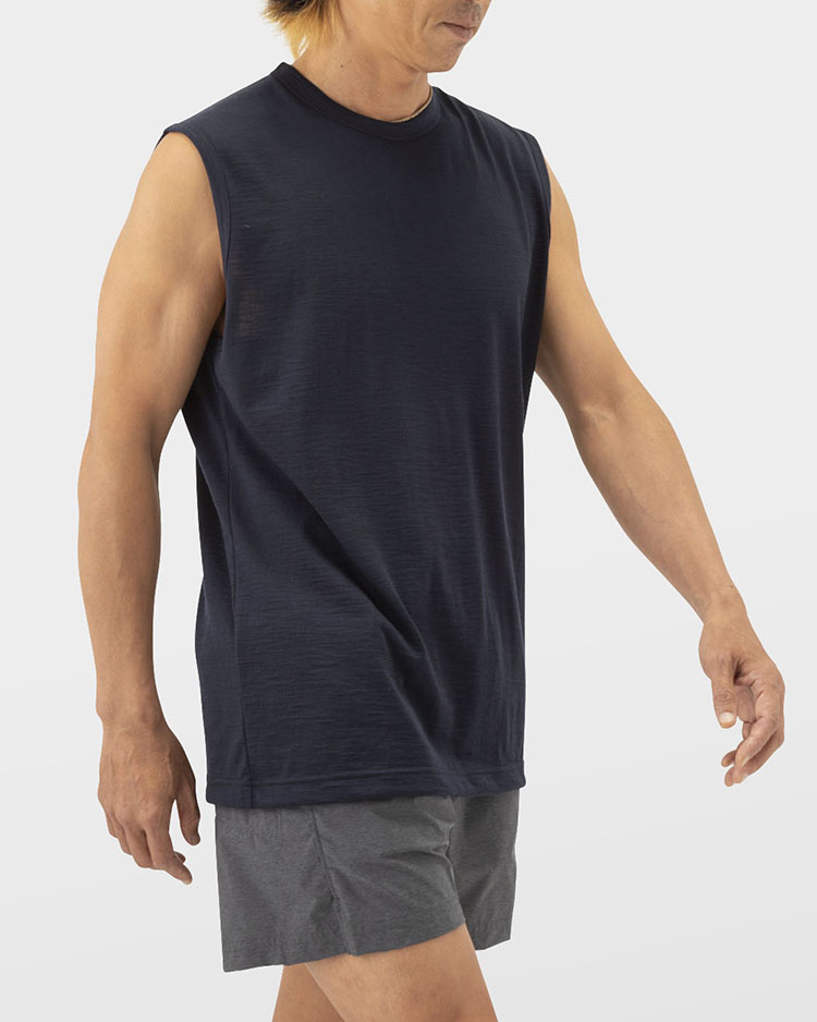 トレイルランニングなどハードなアクティビティにも対応できる、100%メリノウールの気持ち良い着心地のスリーブレスです。山と道のTrail Shirtとの組み合わせもおすすめです。