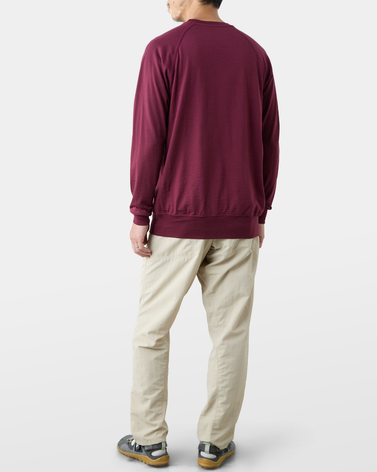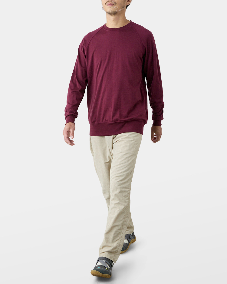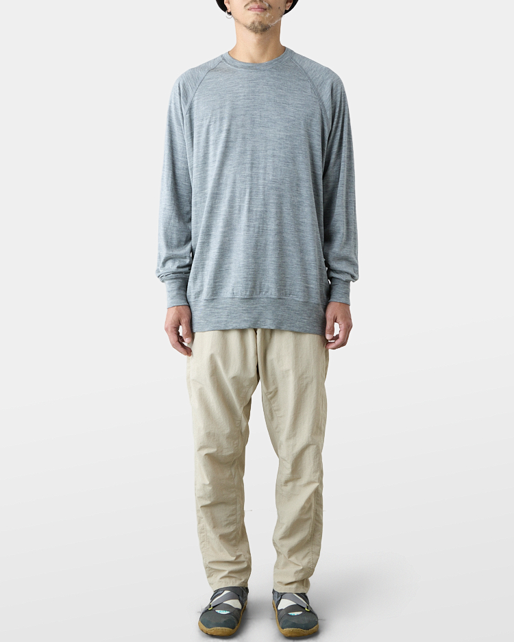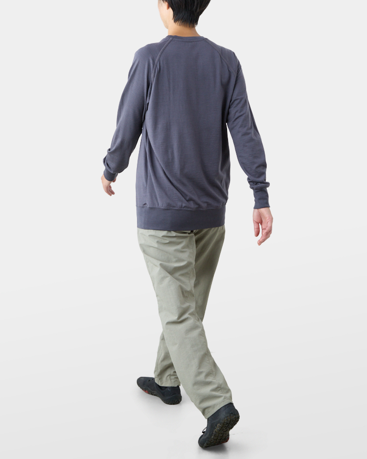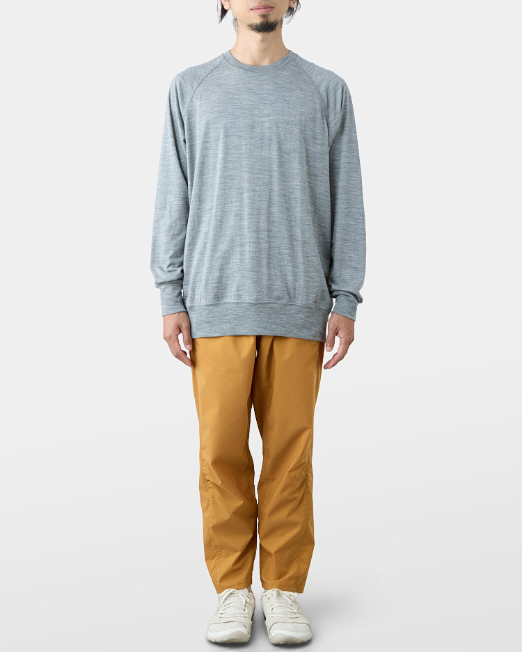 ぱっと見は上品なスエットシャツにも見える、山と道のMerino Pullover(旧製品名。2021年追記)が完成した。もちろん、ミッドレイヤーとしても着てもらえるけれど、僕のおすすめは素肌の上にベースレイヤーとして着ることだ。
