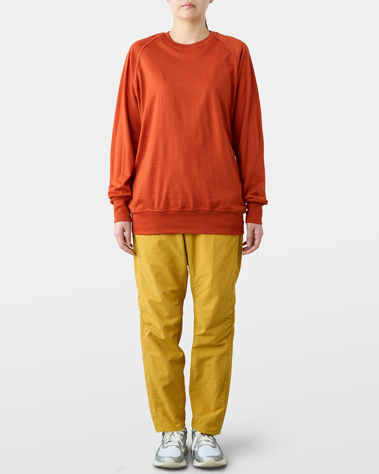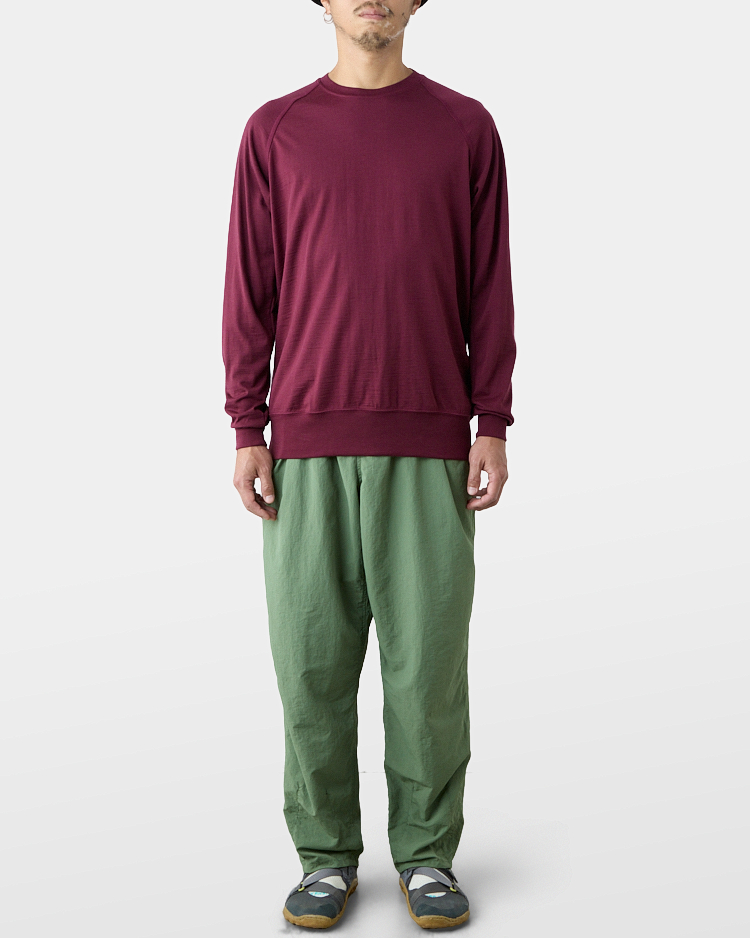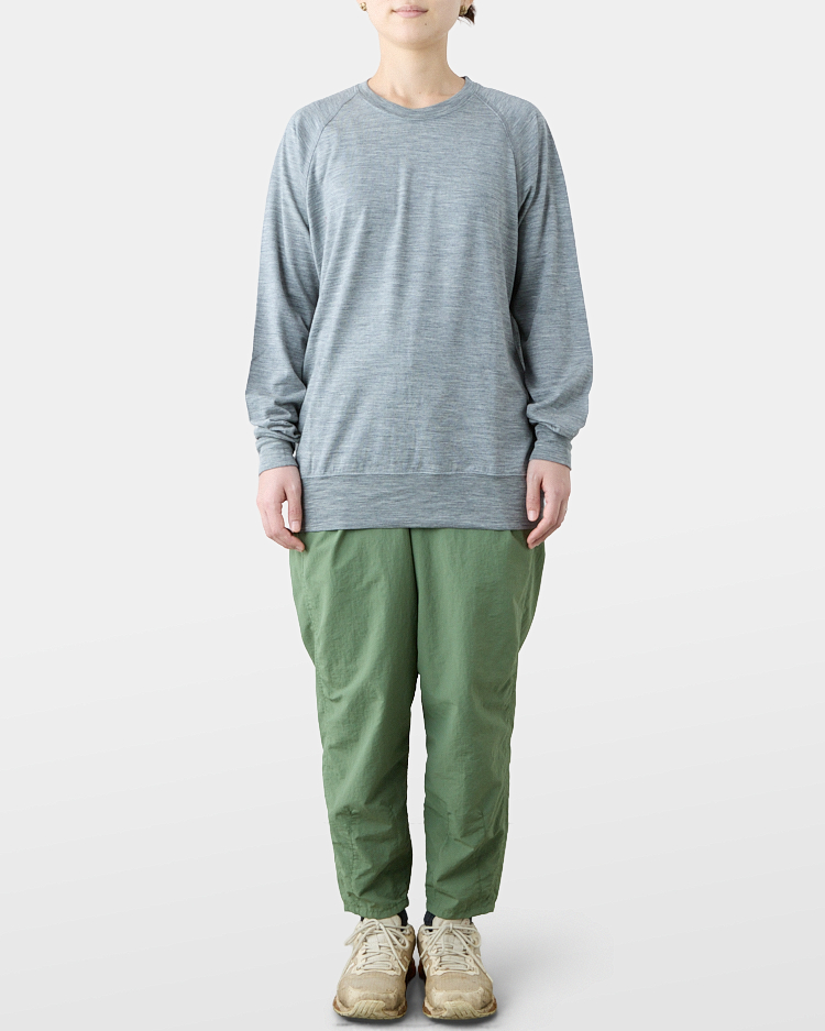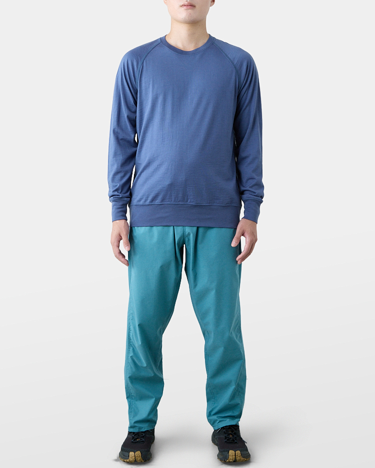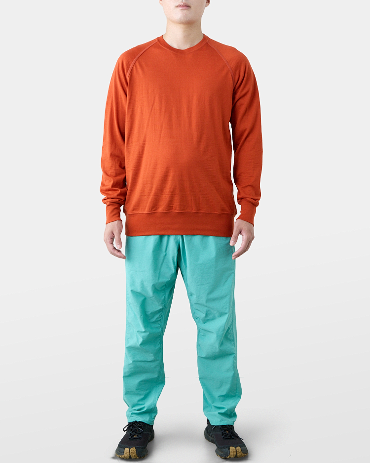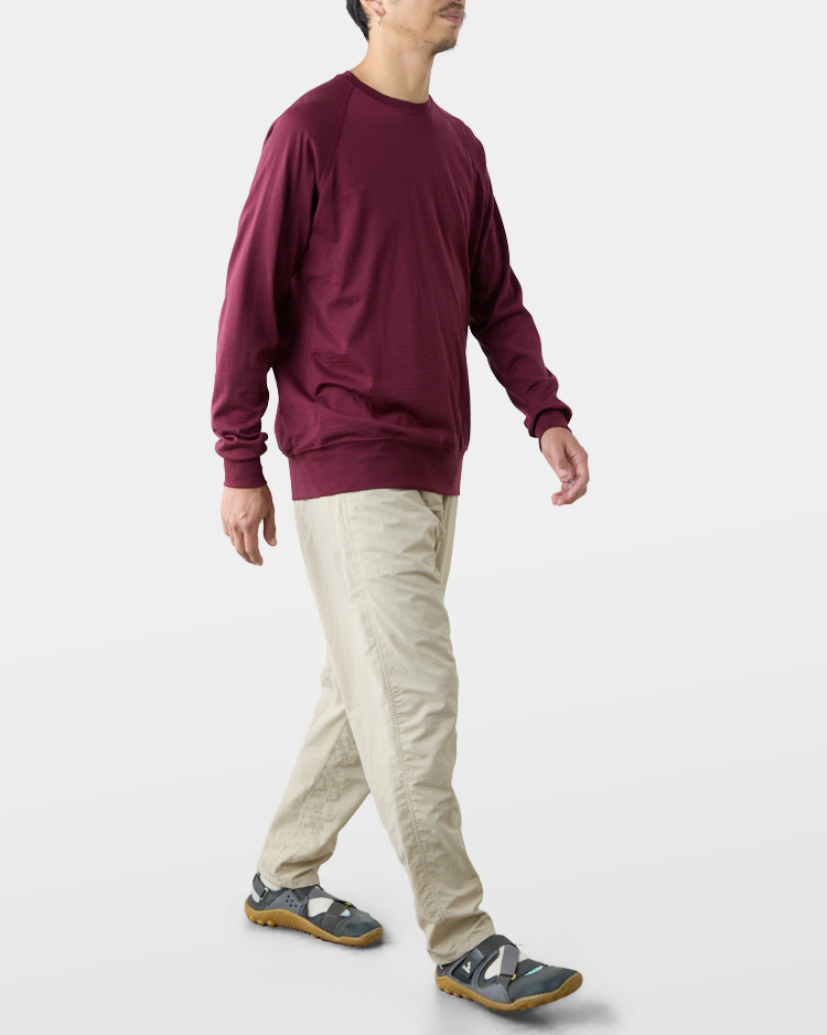 ぱっと見は上品なスエットシャツにも見える、山と道のMerino Pullover(旧製品名。2021年追記)が完成した。もちろん、ミッドレイヤーとしても着てもらえるけれど、僕のおすすめは素肌の上にベースレイヤーとして着ることだ。