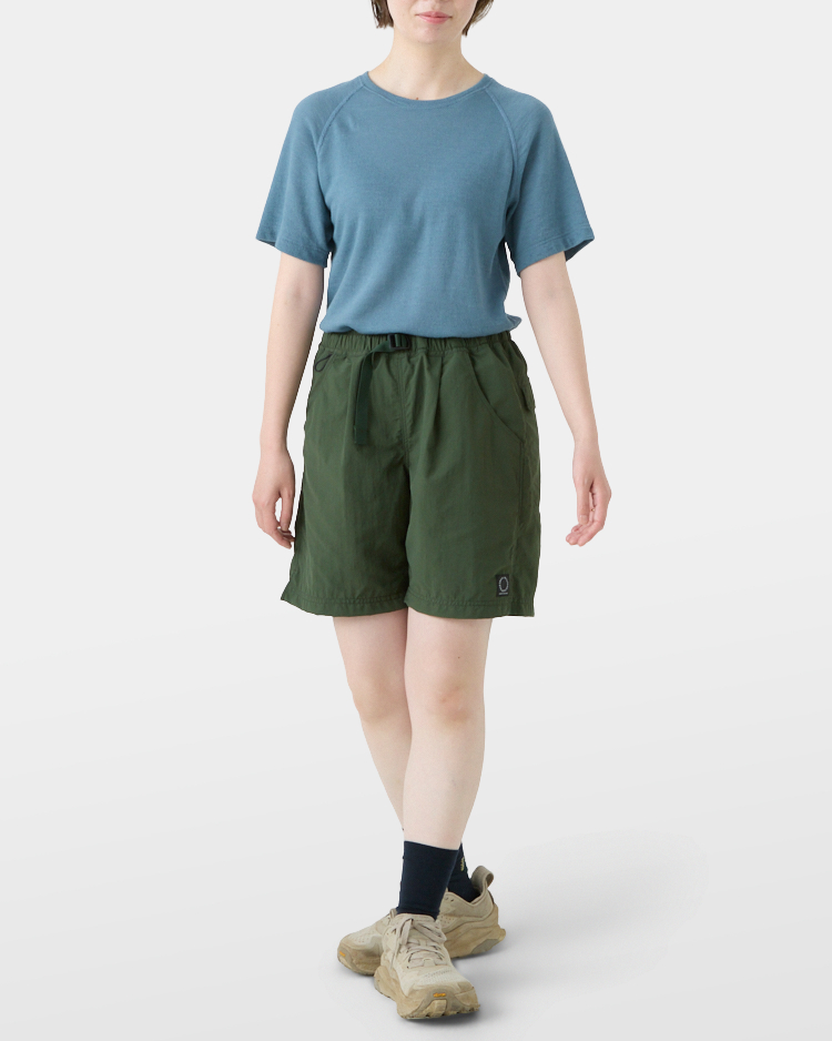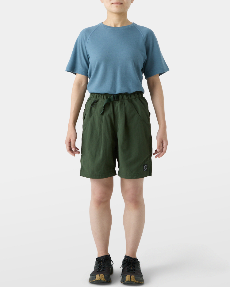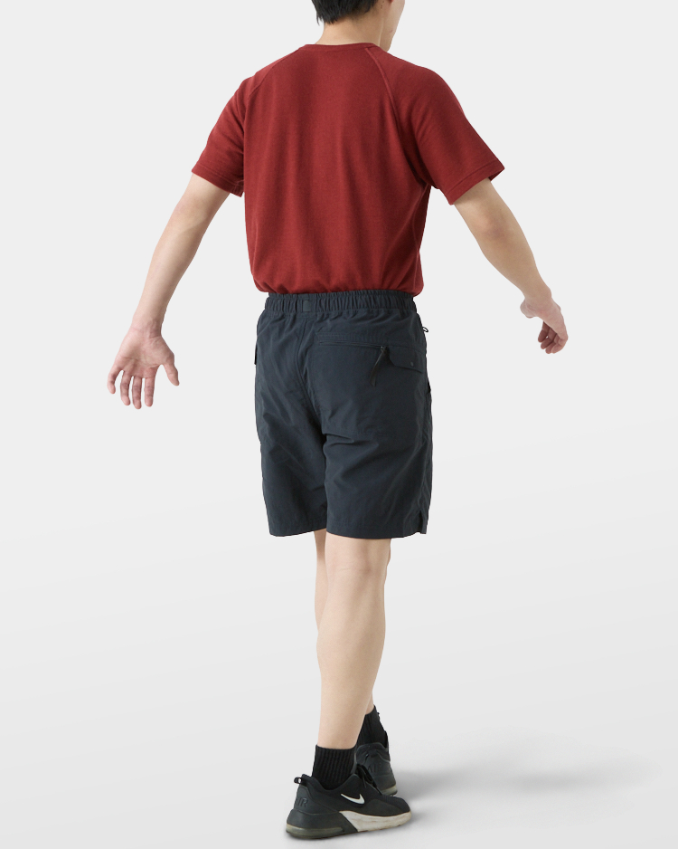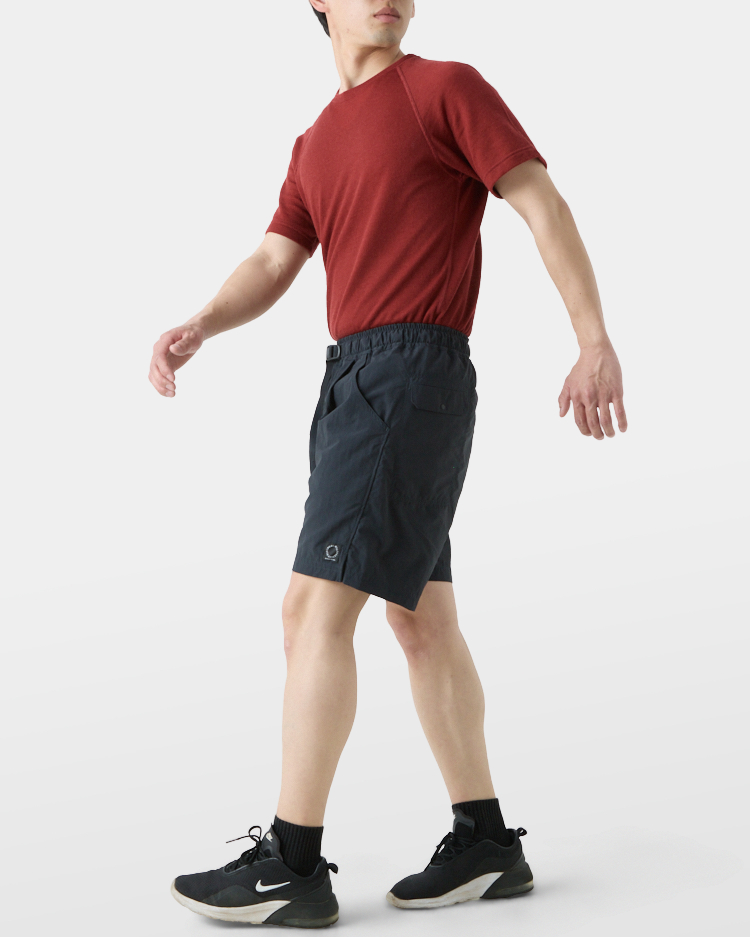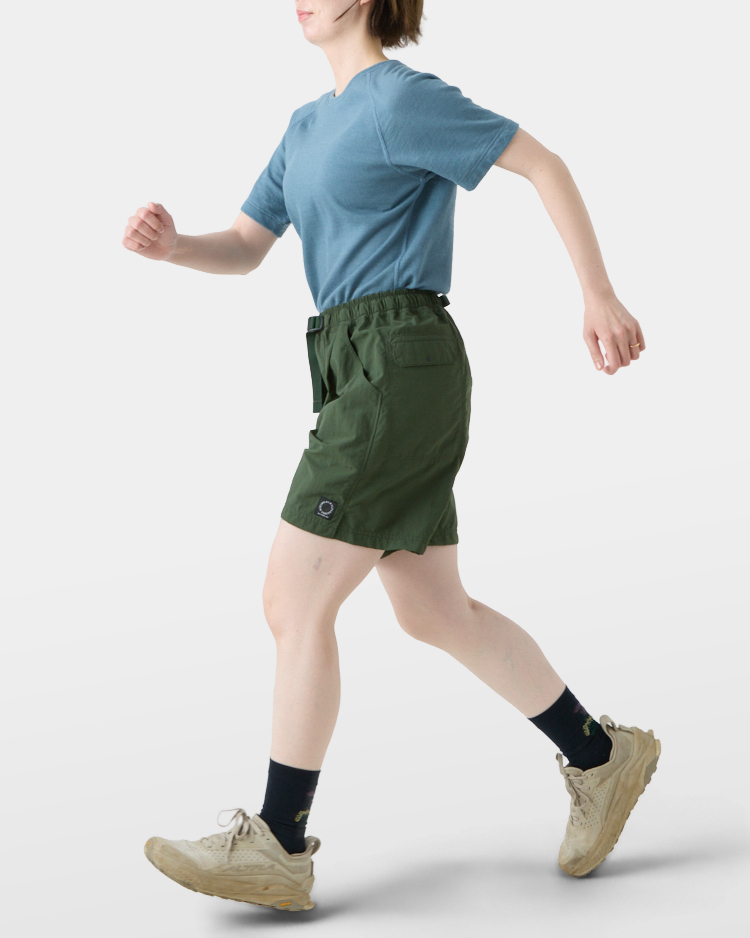 ハイカーのための理想のショーツを目指した5-Pocket Shortsは、山での行動時に脚が動かしやすいよう、一般的なショーツより股下が若干短くデザインされている。