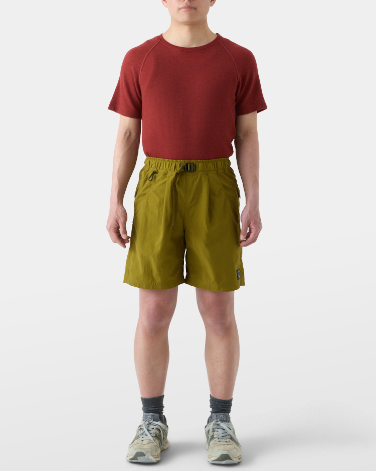 5-Pocket Long Shortsに採用している120g/㎡厚のタスランナイロンは、コットンに似た風合いで、軽量かつ速乾性と耐久性を併せ持つ生地だ。