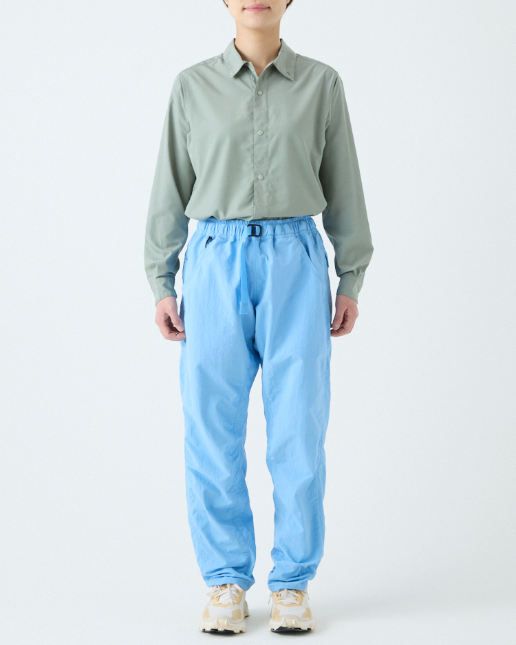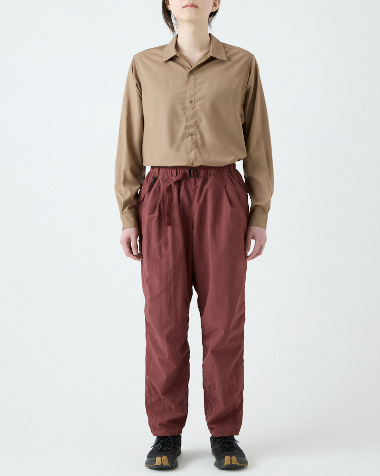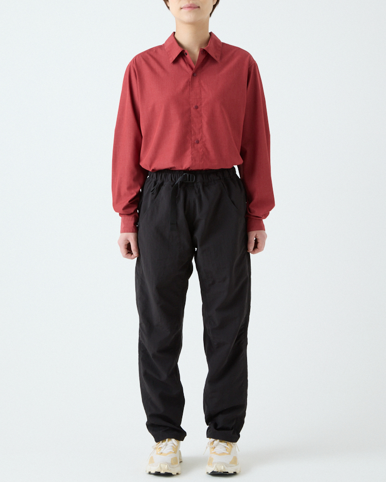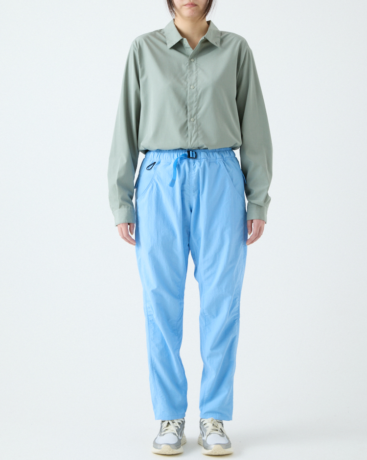 当初は単純に5-Pocket Shortsを長くすればいいと考えていたけれど、開発は思ったよりずっと難しかった。素材に使用しているタスランナイロンにストレッチ性がないため、どうしても膝の動きが阻害されてしまう。ストレッチ素材を使うことも検討したけれど、それはそれで乾きにくかったり風を通しやすいなど、違う問題が生じてしまう。どうにか同じ素材で膝の動かしやすいロングパンツを作れないかと、5-Pocket Shortsと同じパタンナーの土川枝里子さんと何度もパターンを作り直し、テストを繰り返した。