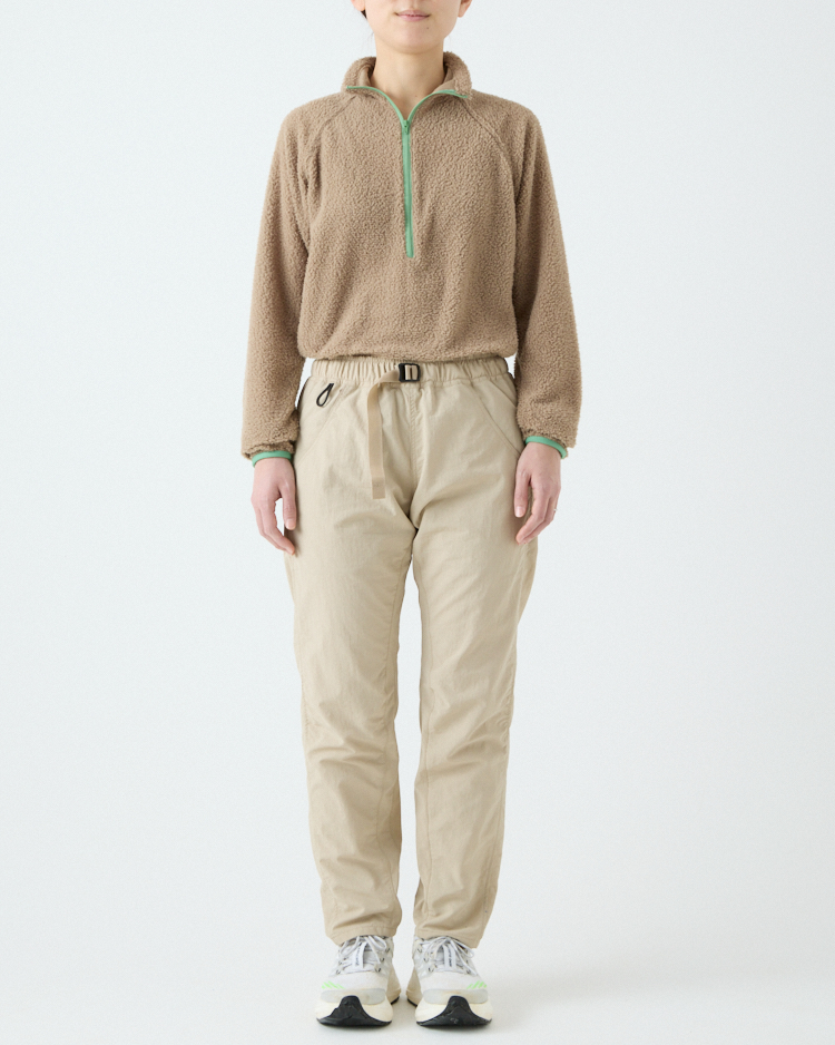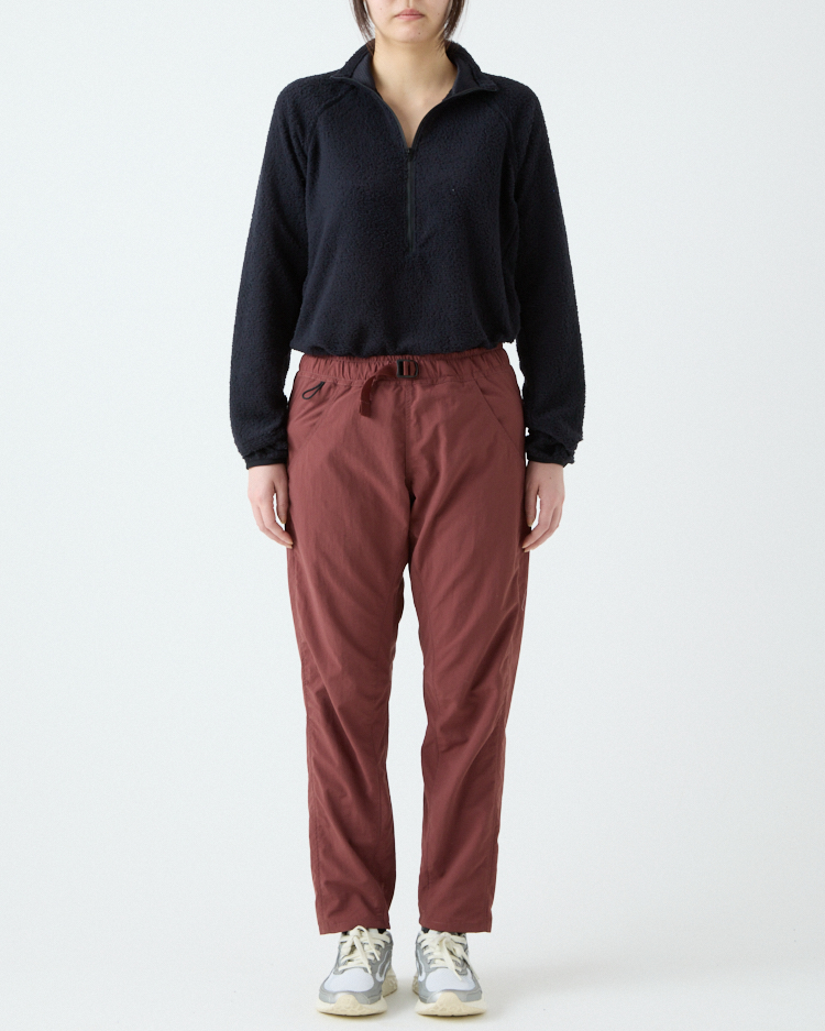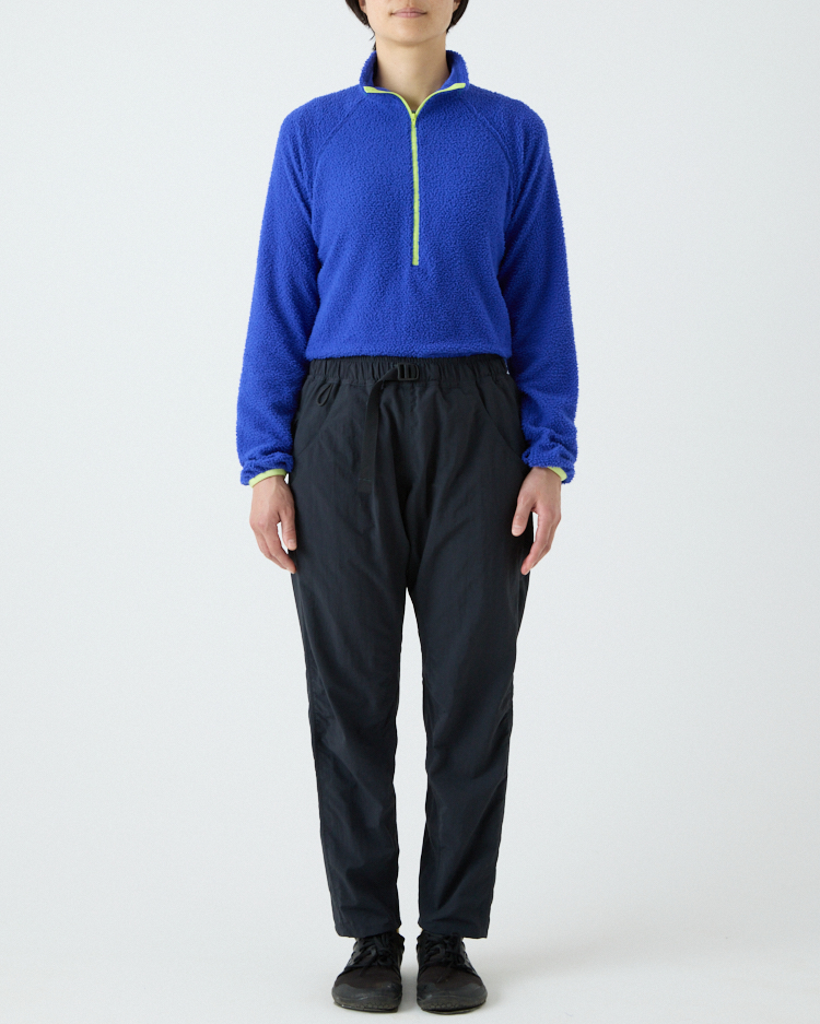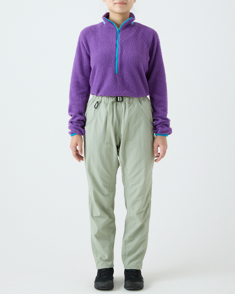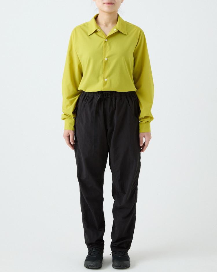 当初は単純に5-Pocket Shortsを長くすればいいと考えていたけれど、開発は思ったよりずっと難しかった。素材に使用しているタスランナイロンにストレッチ性がないため、どうしても膝の動きが阻害されてしまう。ストレッチ素材を使うことも検討したけれど、それはそれで乾きにくかったり風を通しやすいなど、違う問題が生じてしまう。どうにか同じ素材で膝の動かしやすいロングパンツを作れないかと、5-Pocket Shortsと同じパタンナーの土川枝里子さんと何度もパターンを作り直し、テストを繰り返した。