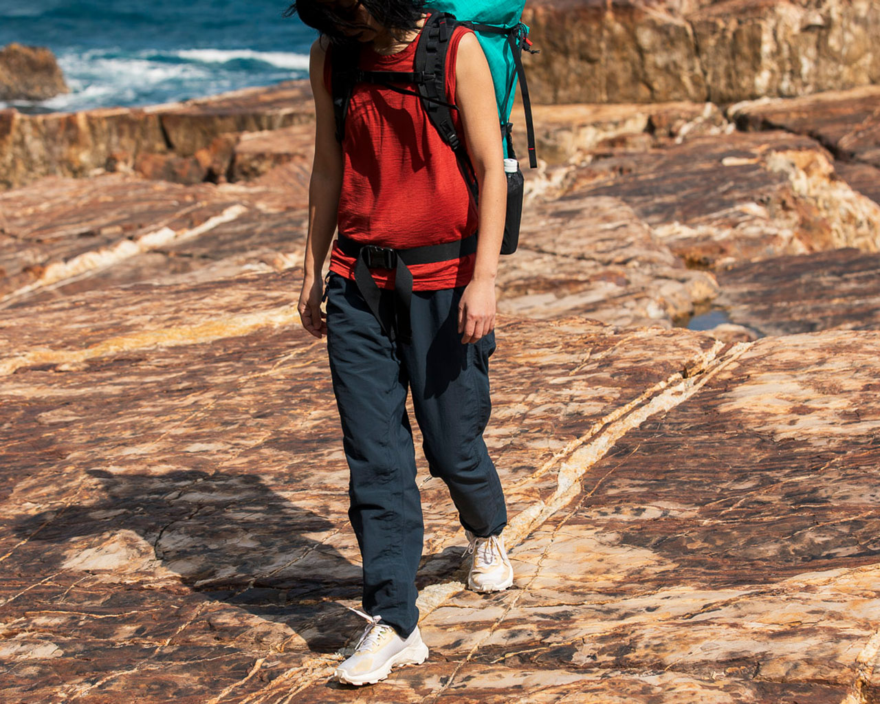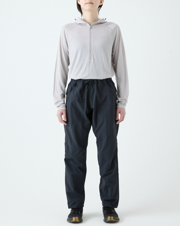 求めたのは、足の動きを妨げない独自のパターンで日本の山の急峻なトレイルも快適に歩け、ラフに扱える高い耐久性を持ち、濡れてもすぐに乾いて、地図や行動食などハイキング中に必要なものをすっきりと収納してくれるポケットを備えたパンツ。