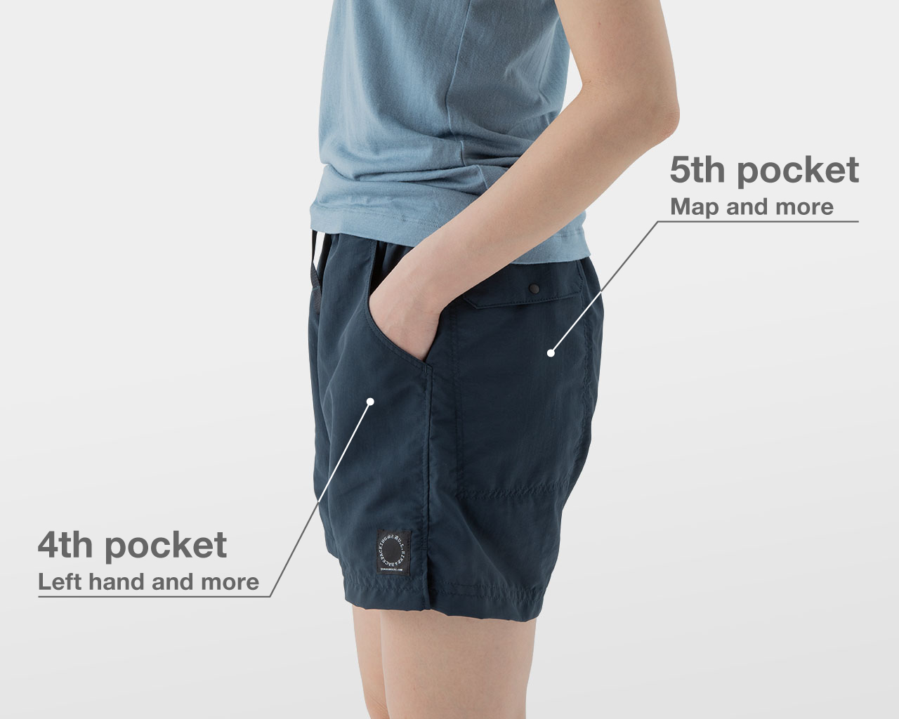 タフだけど抜群に動きやすく、濡れてもすぐに乾いて、ポケットがたくさんあっても足の動きは邪魔せず、ついでにスマートフォンもすっきりと収納できる。この5-Pocket Shortsは、そんなハイキングに必要な機能を徹底的に考えた、正にハイカーのためのショーツだ。
