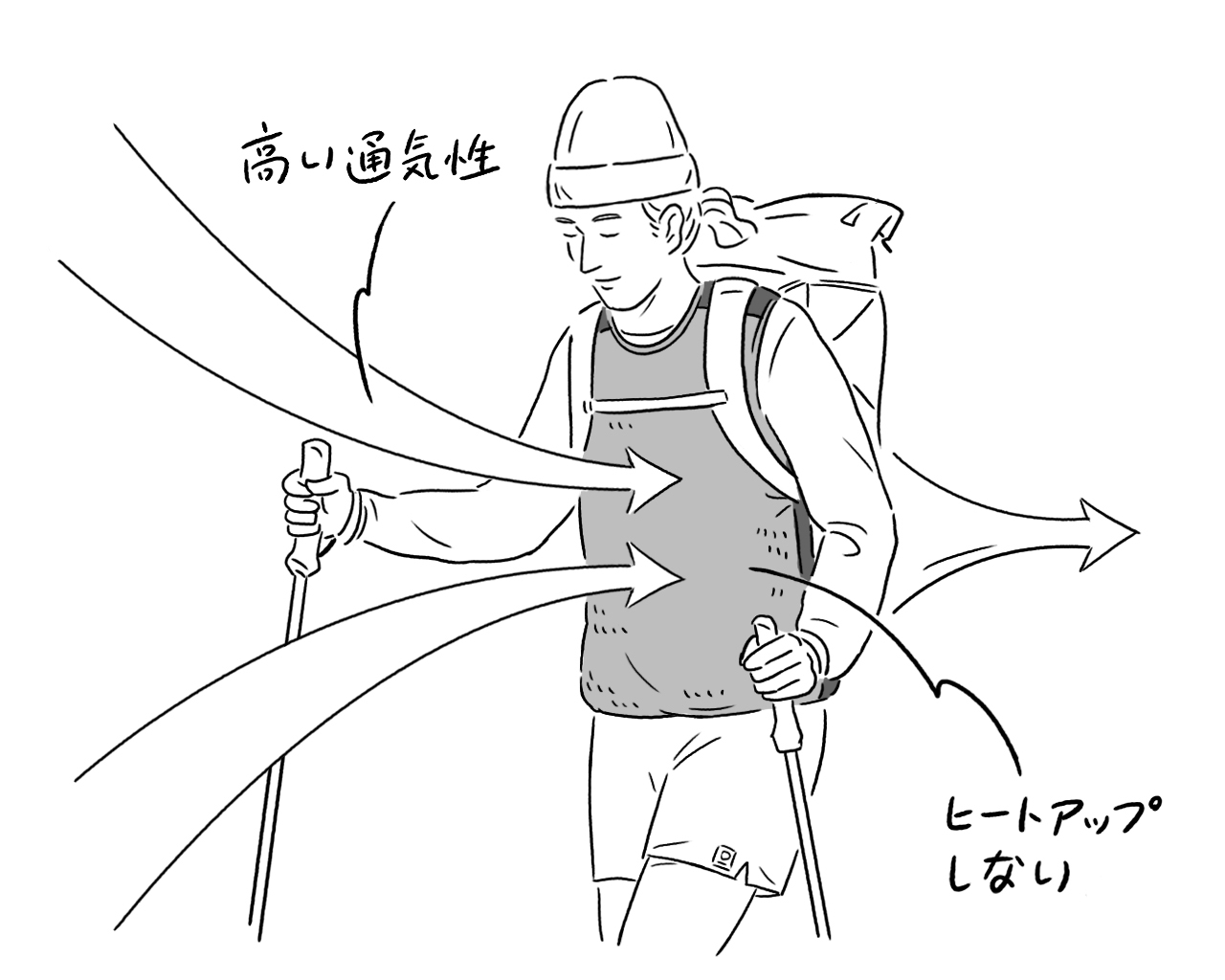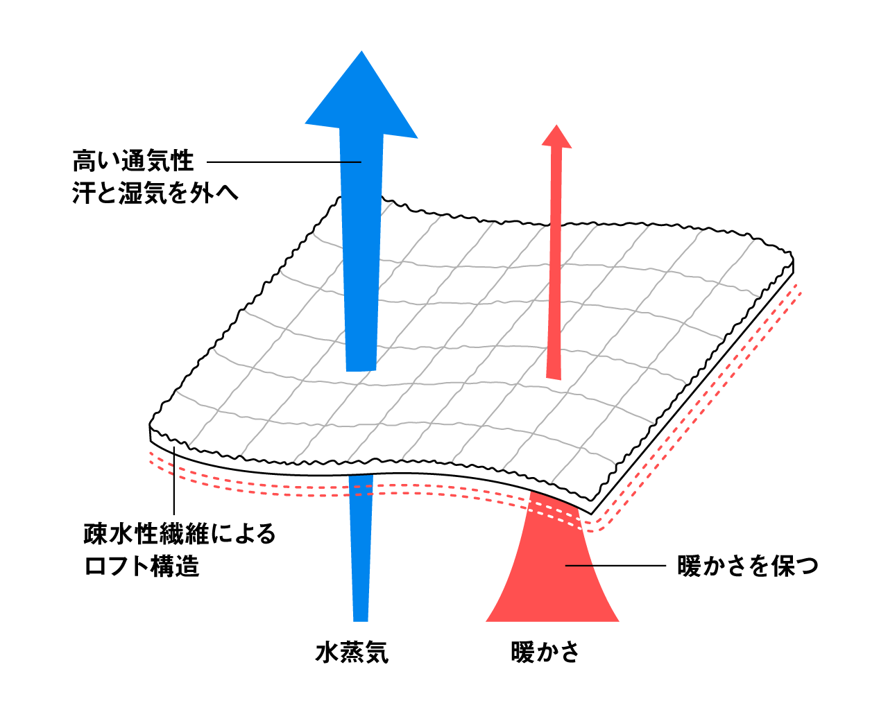 天然ダウンや化繊ダウンは蒸気を封じ込めて保温する一方、蒸れやすいという特性を持っている。