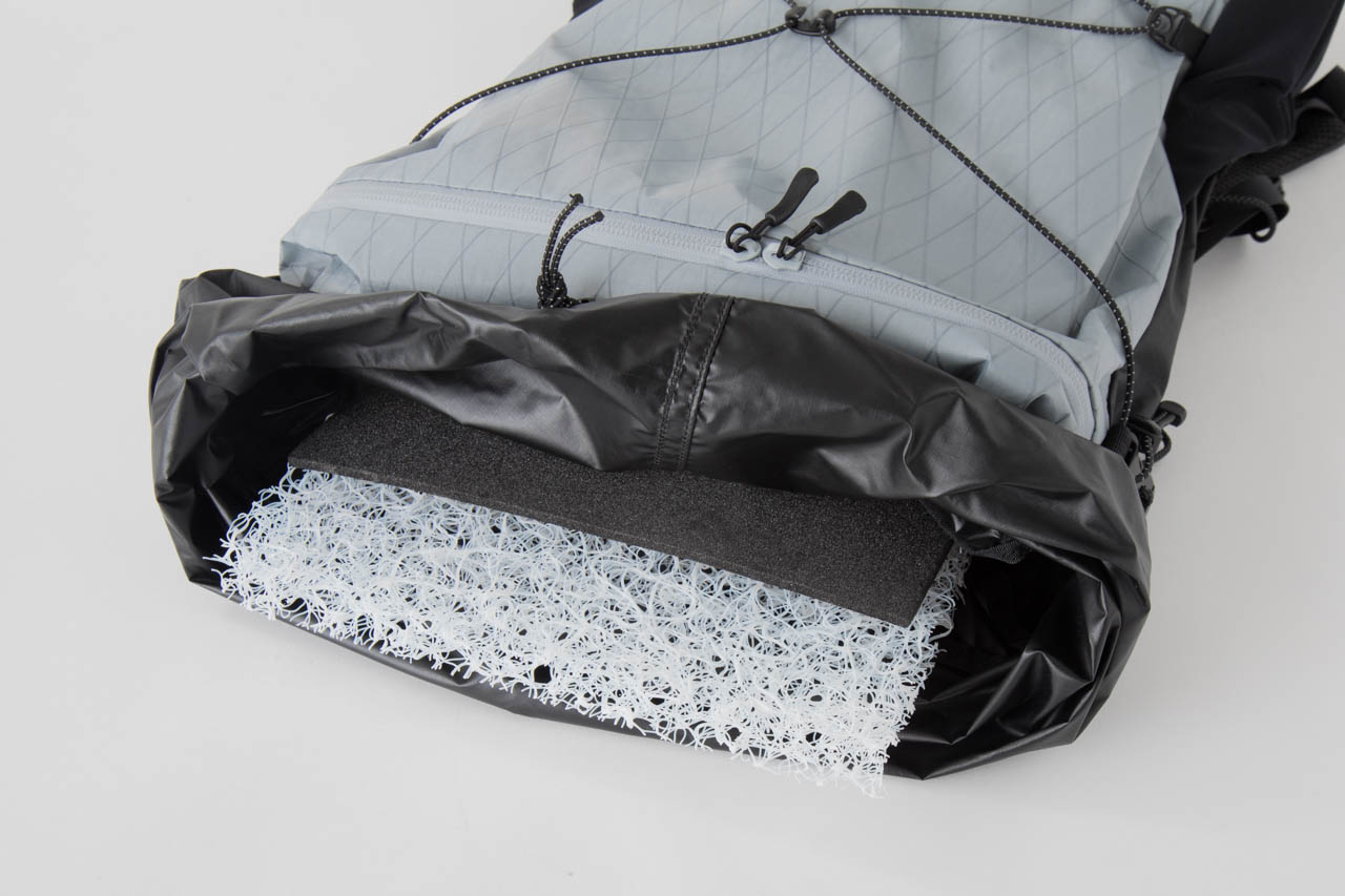 - バックパックの背面部分を開き、四つ折りになったMinimalist Padを取り出します。