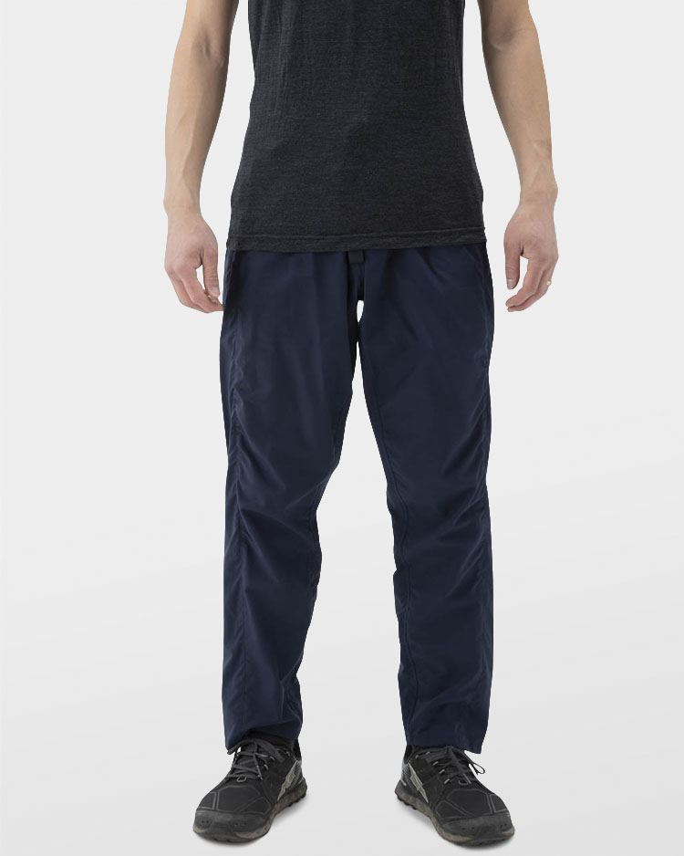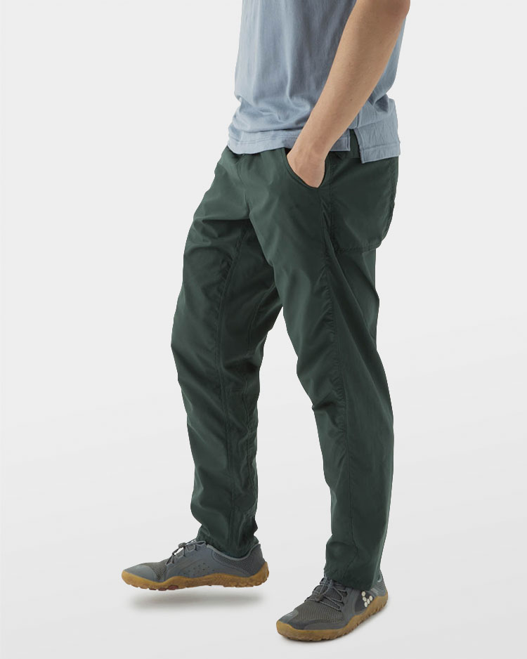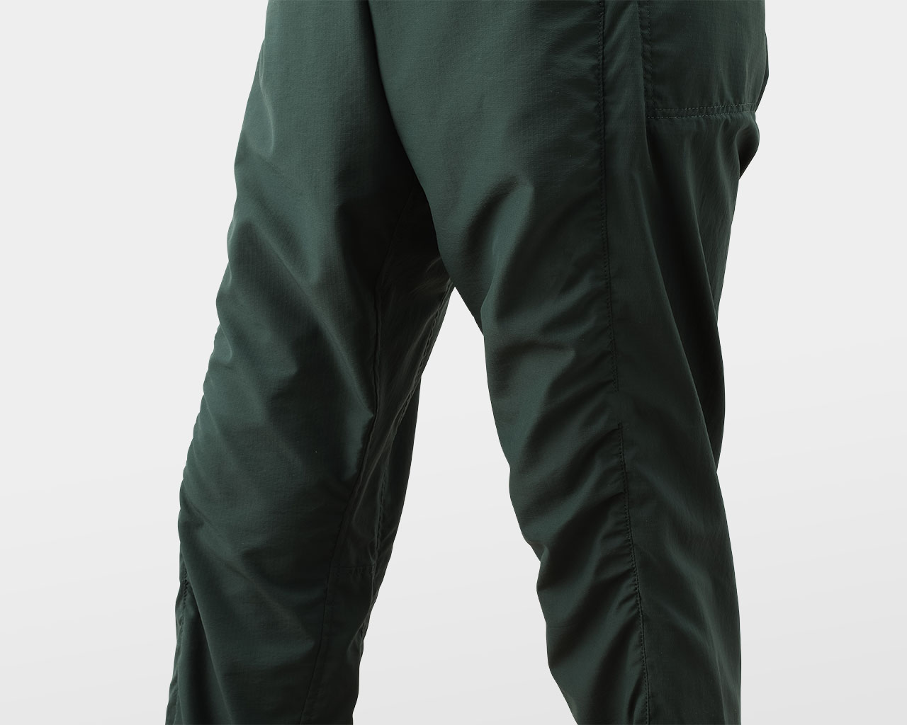 素材には山と道が独自に開発を依頼したパーテックス・イクイリブリアムを採用。柔らかくもハリのある生地は裏面に凹凸のある二重織り構造となっており、汗をかいても肌離れが良く快適で足上げを邪魔しない位置に配置した5つのポケットがスマートフォンや地図を効率的に収納します。