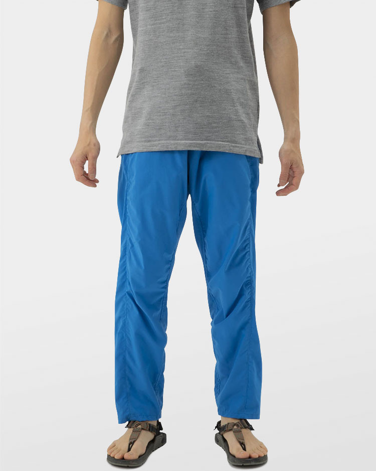 これまで山と道で出してきたボトムスの短所を克服した製品を作りたいと考えた。それは多湿な夏でも汗で生地と肌が密着することなく、運動中にストレスを感じない軽さと動きやすさと強度を両立したボトムス。