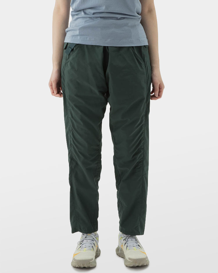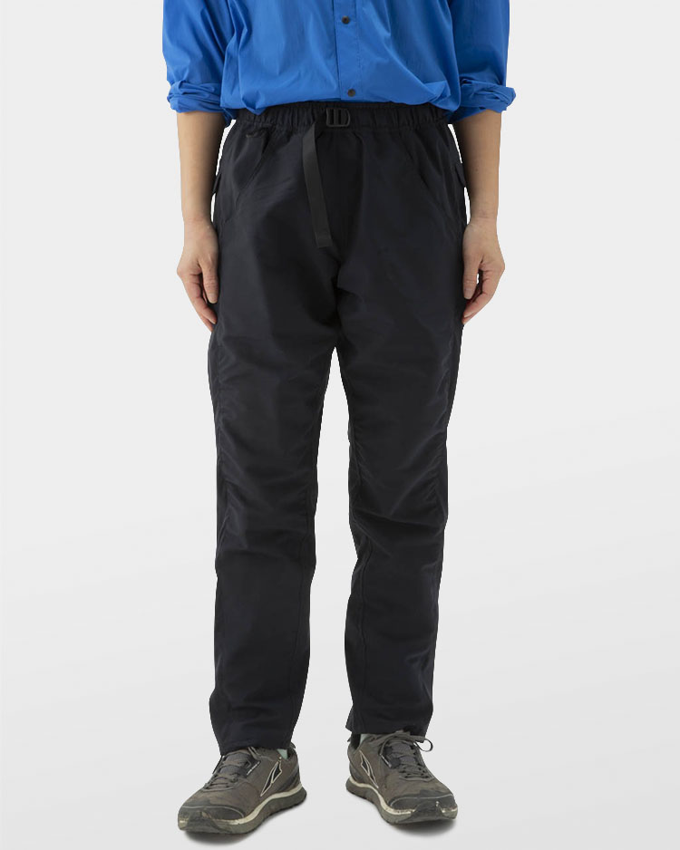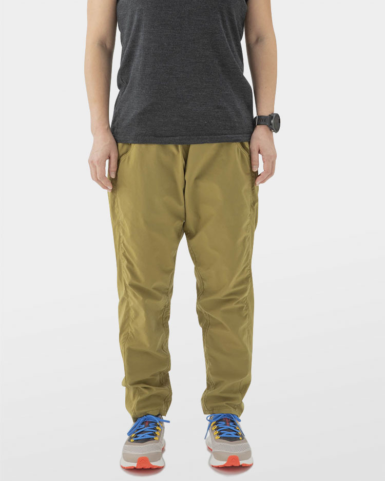 素材には山と道が独自に開発を依頼したパーテックス・イクイリブリアムを採用。柔らかくもハリのある生地は裏面に凹凸のある二重織り構造となっており、汗をかいても肌離れが良く快適で足上げを邪魔しない位置に配置した5つのポケットがスマートフォンや地図を効率的に収納します。