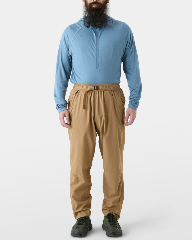 薄手で非常に軽量な素材のLight 5-Pocket Pantsは抜群の速乾性能を持ち、濡れてもあっという間に乾く。また一般的に乾きにくいウエスト部分にもメッシュゴムを採用し、速乾性をさらに高めている。